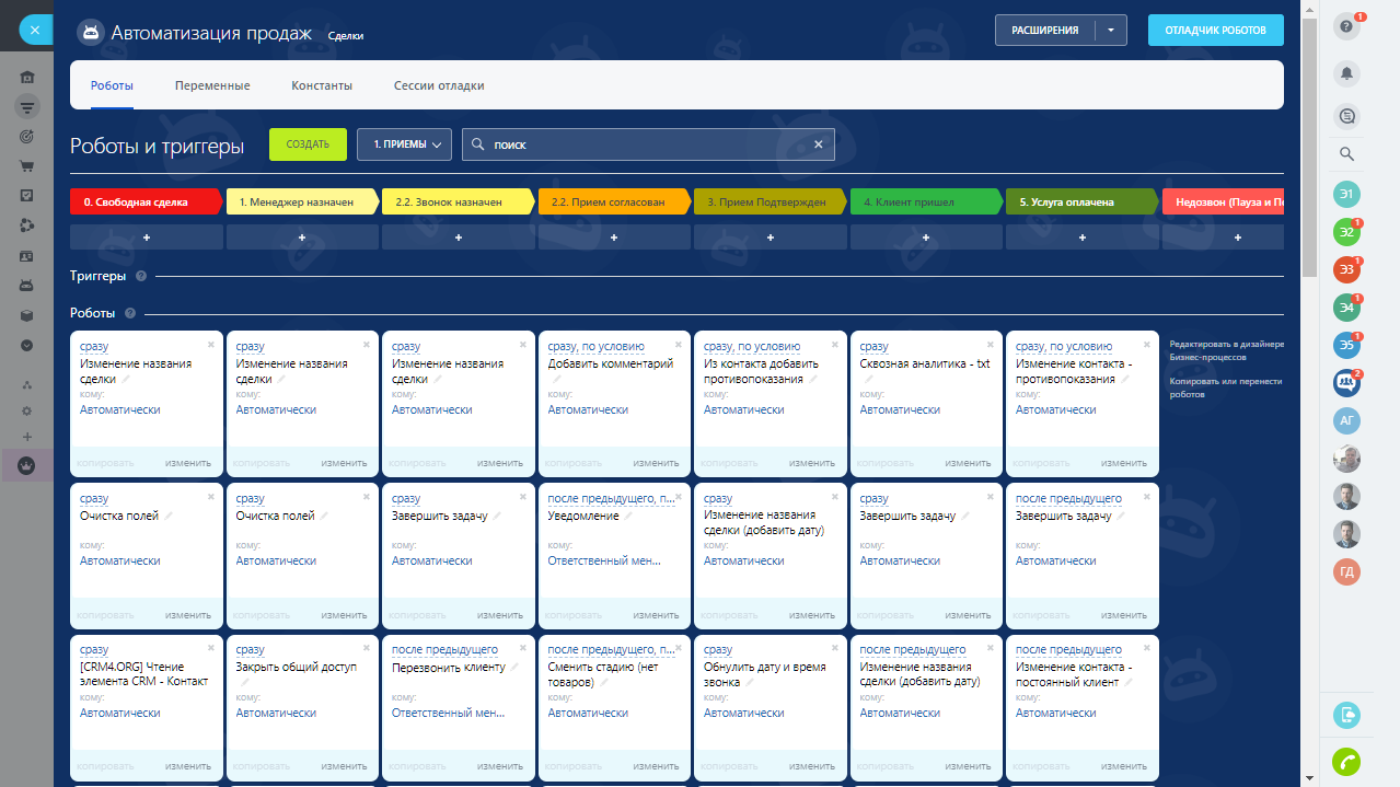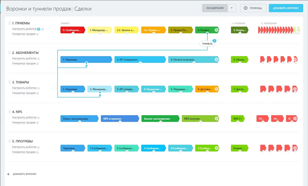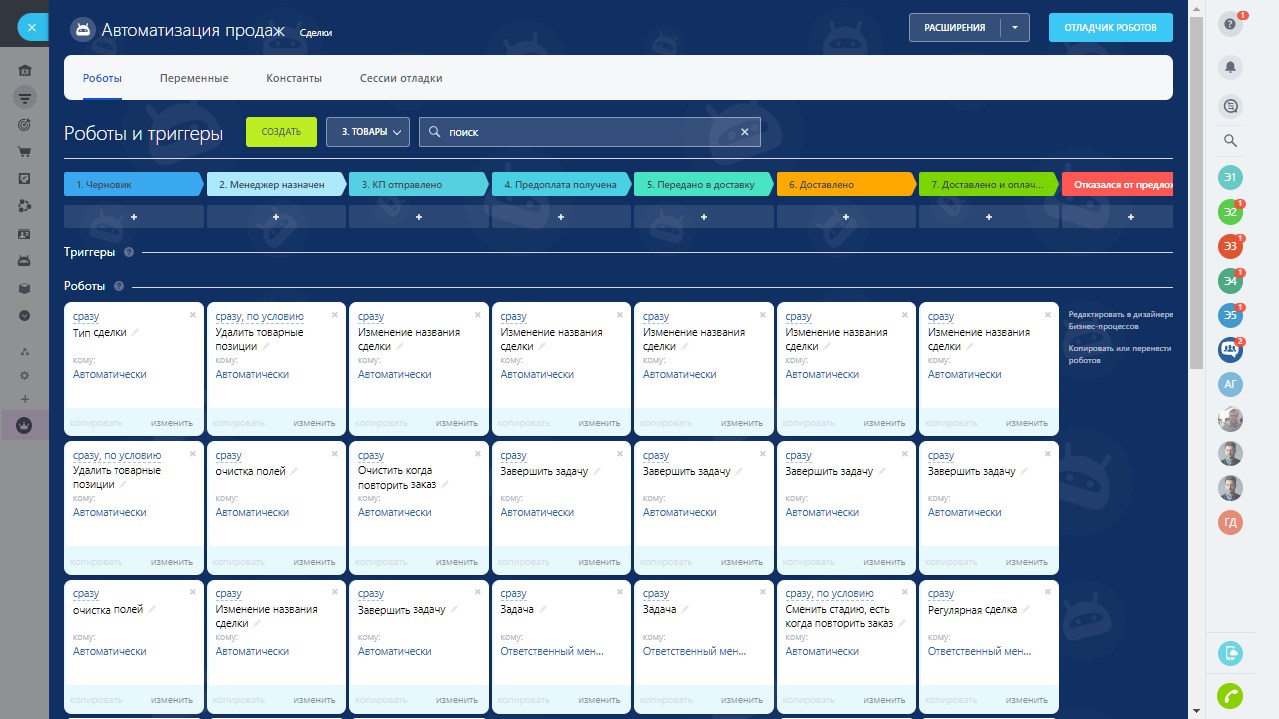 ГОТОВАЯ CRM-СИСТЕМА ВКЛЮЧАЕТ НАСТРОЕННУЮ АВТОМАТИЗАЦИЮ ВО ВСЕХ ВОРОНКАХ