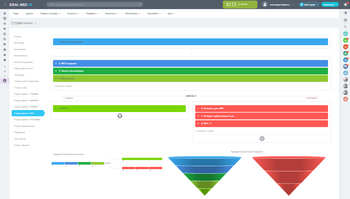 5. Сделка направление «NPS», стадии, участники и описание событий: