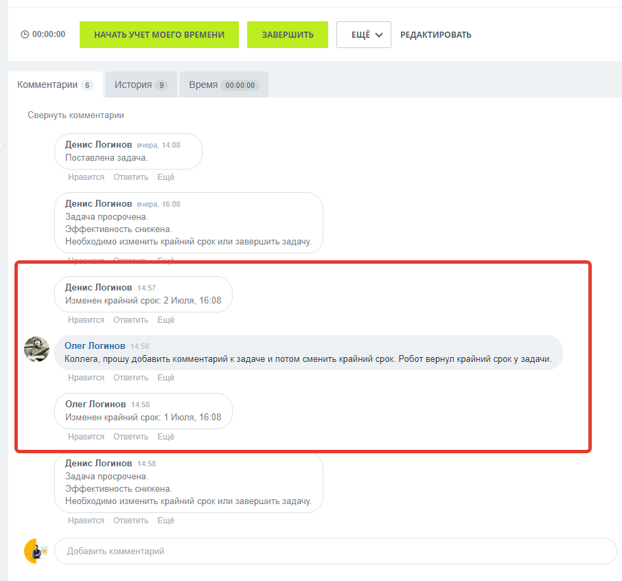 - Отслеживает своевременность реагирования и соблюдение крайних сроков по каждой задачи и в случае возникновения «трудностей» информирует руководителей сотрудников об этом.