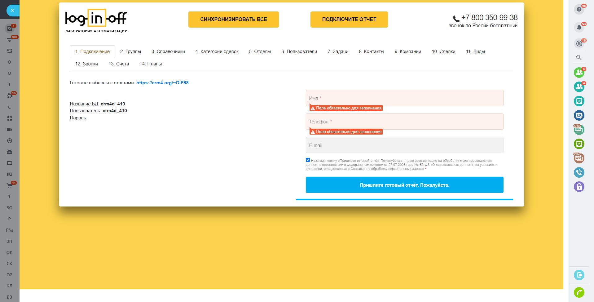 Шаблон (телефония, лиды, сделки, план-факт) - https://crm4.org/~OiF88