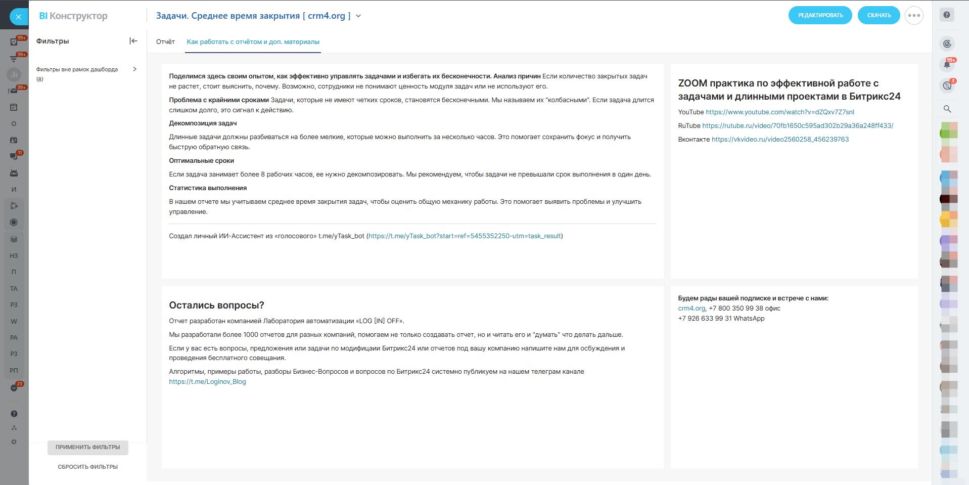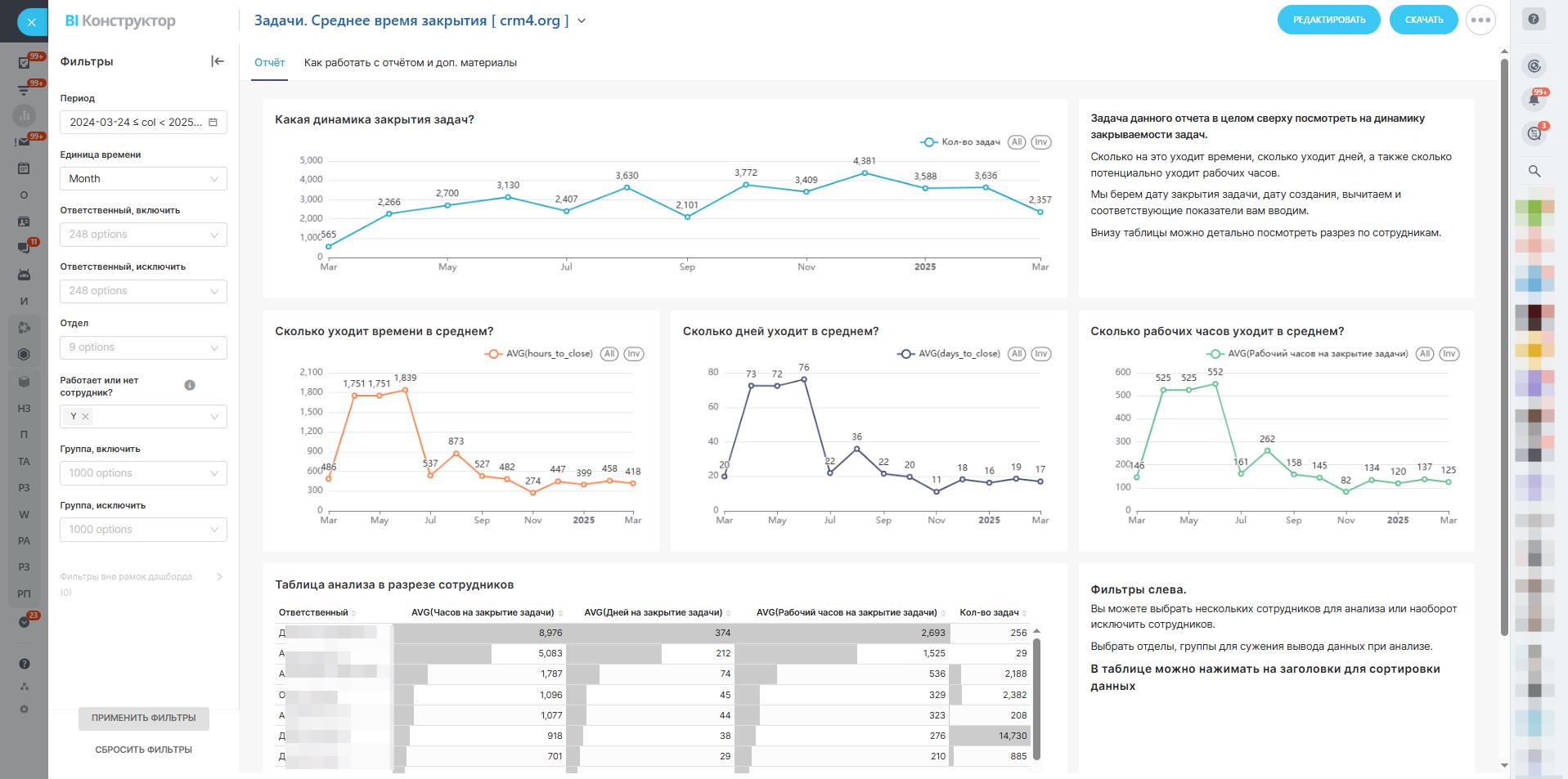 В нашем отчете мы учитываем среднее время закрытия задач, чтобы оценить общую механику работы. Это помогает выявить проблемы и улучшить управление.