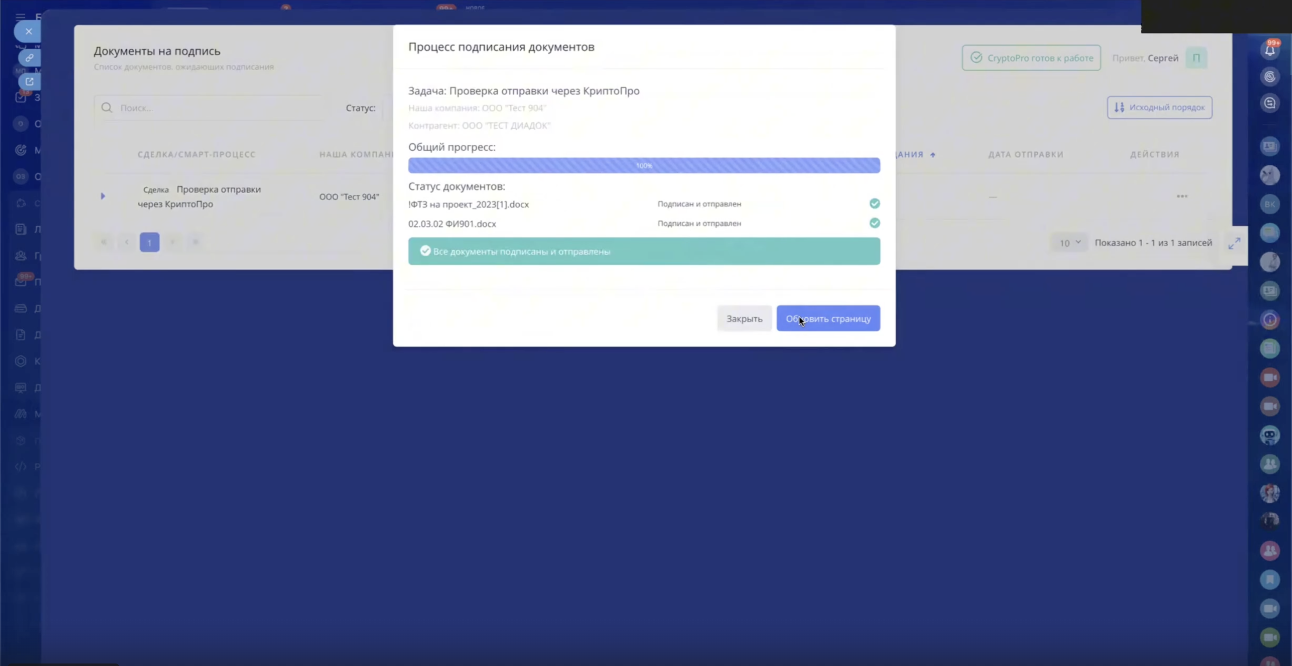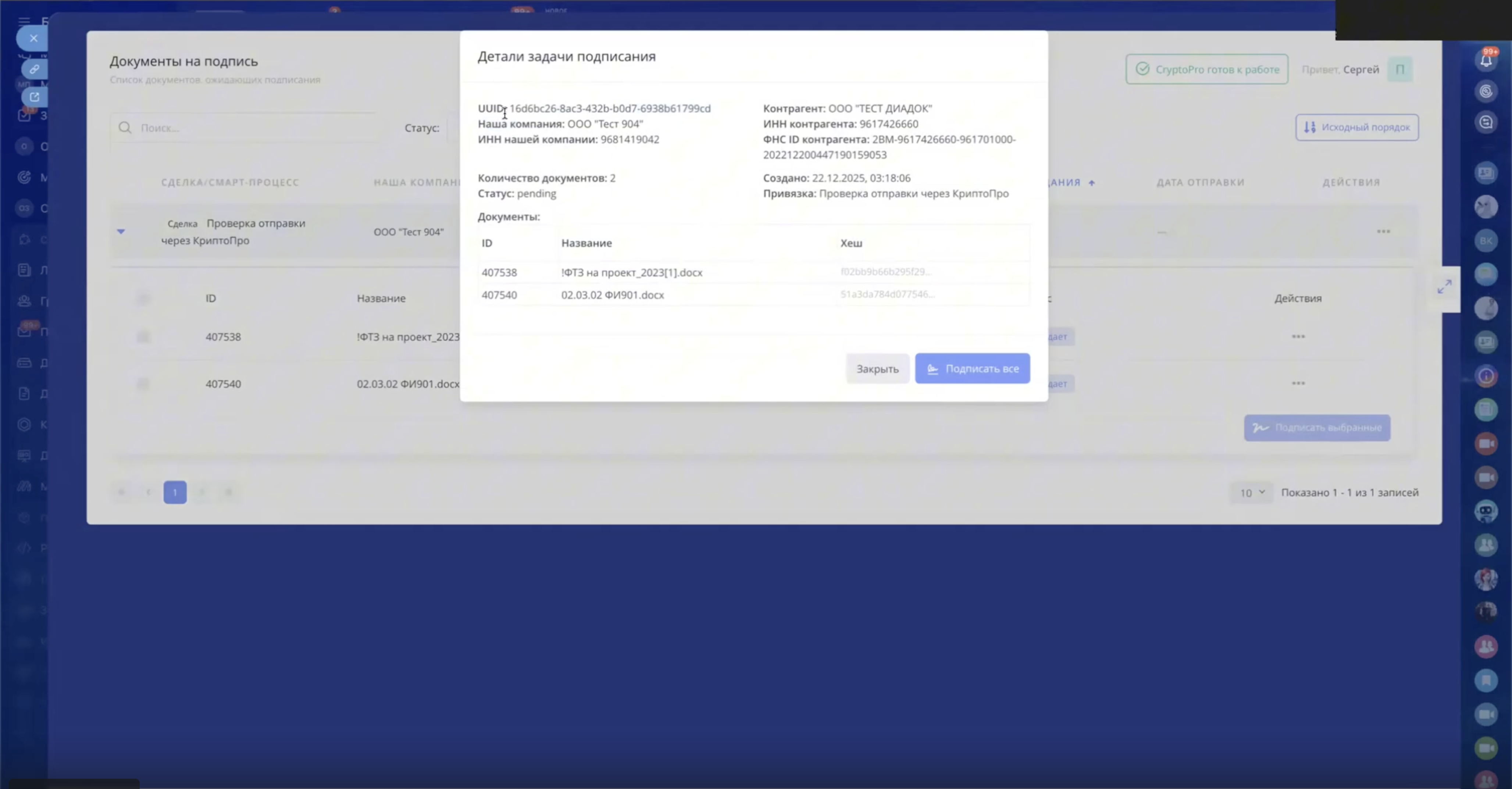 - Массовое подписание документов
