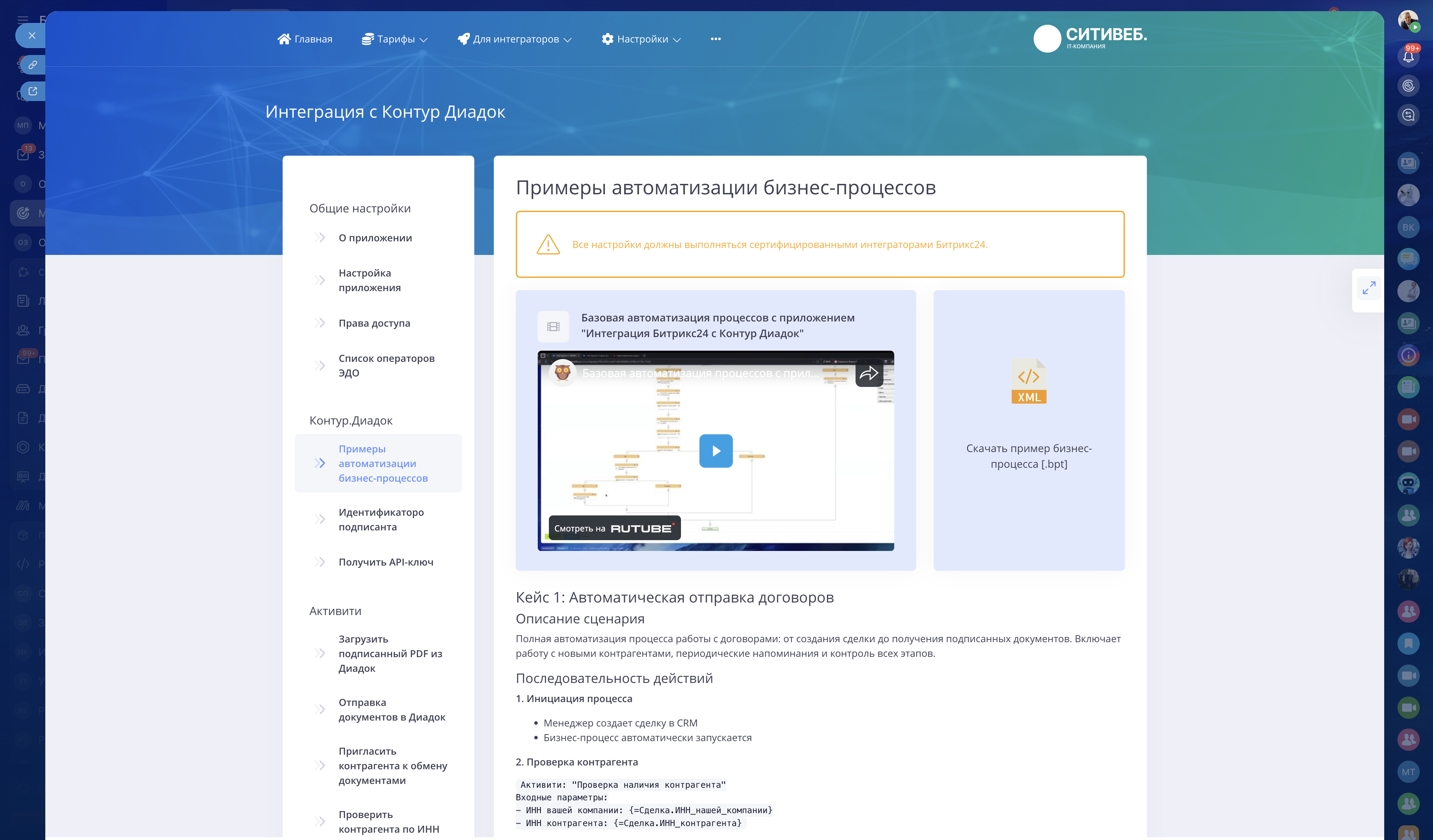 - Единственное полноценное решение для Битрикс24 + Контур.Диадок