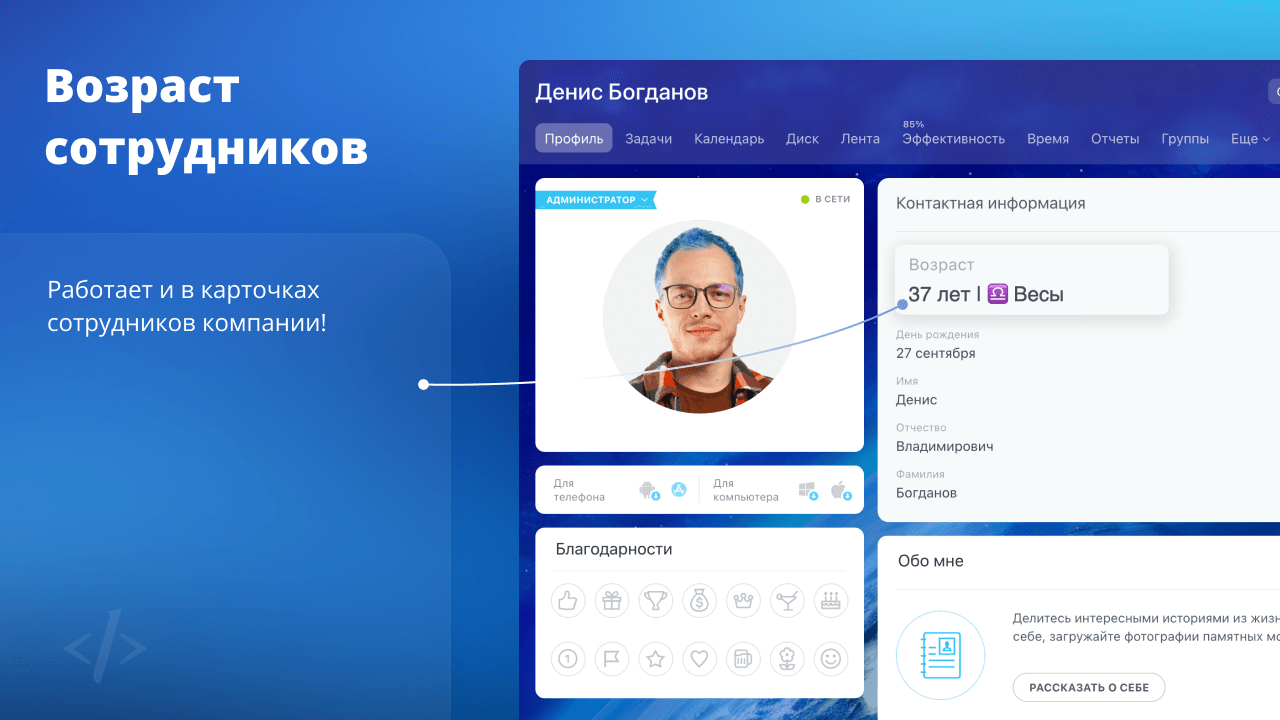 - HR и руководителям: для удобного просмотра данных по сотрудникам