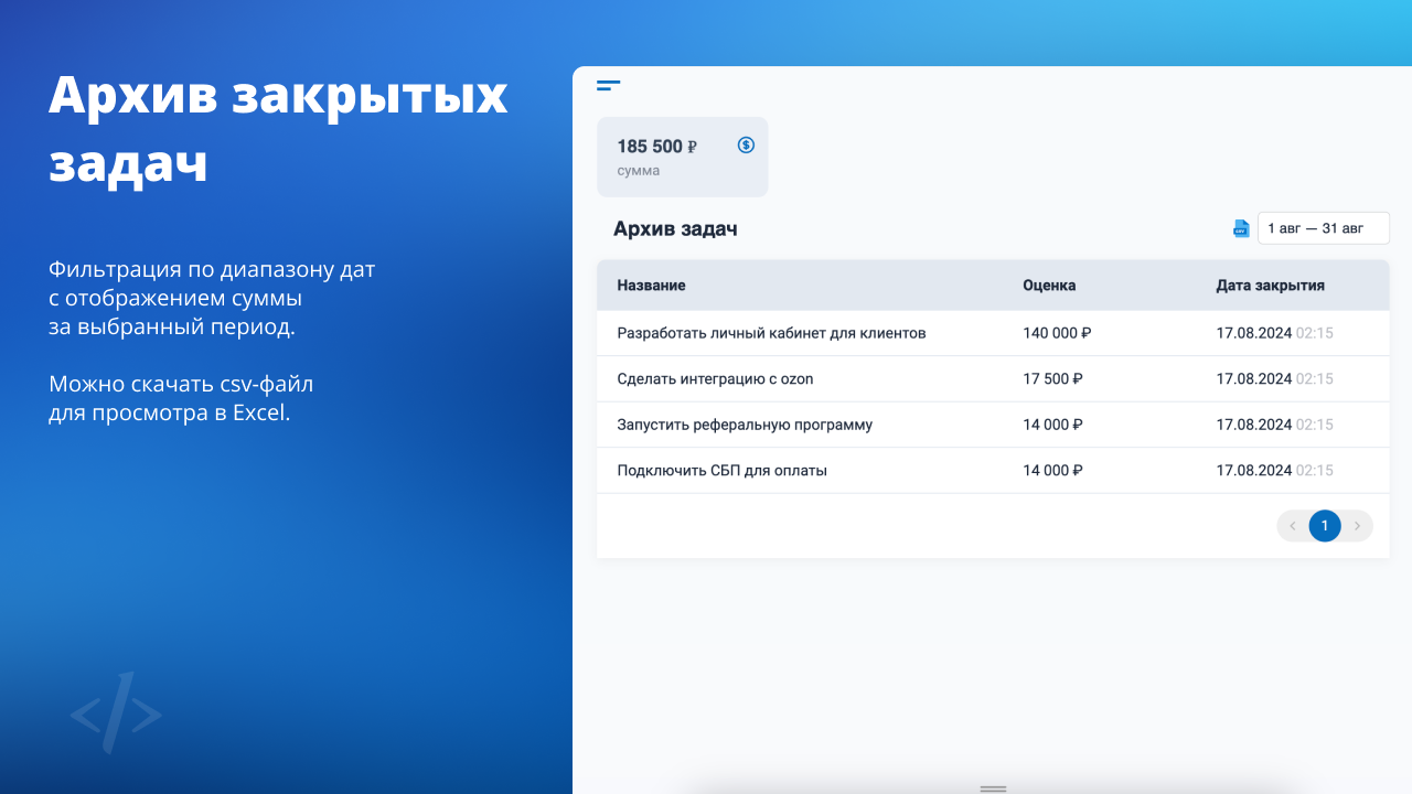 Подойдёт юридическим, консалтинговым, IT и прочим компаниям, где отгружаются часы специалистов.