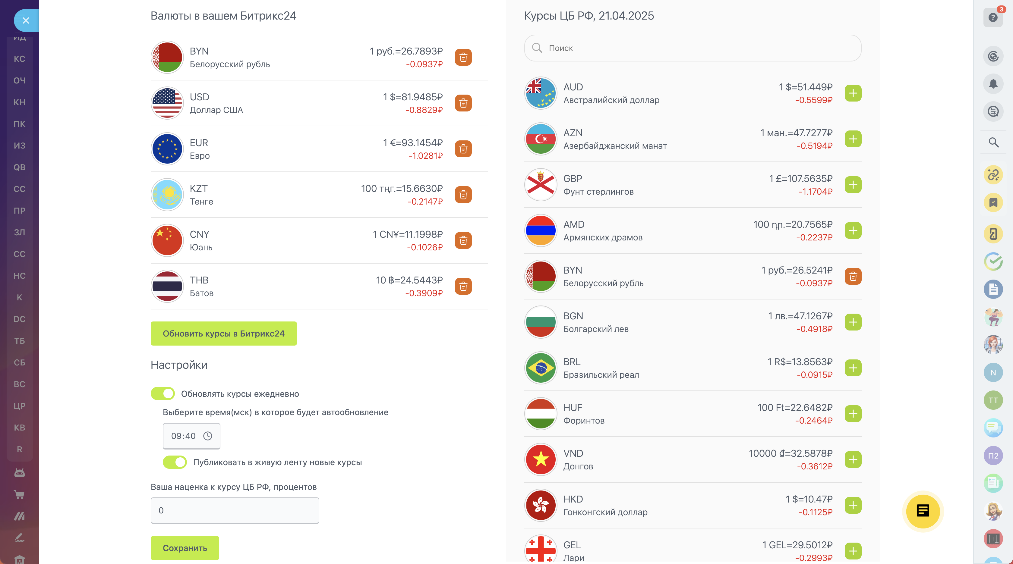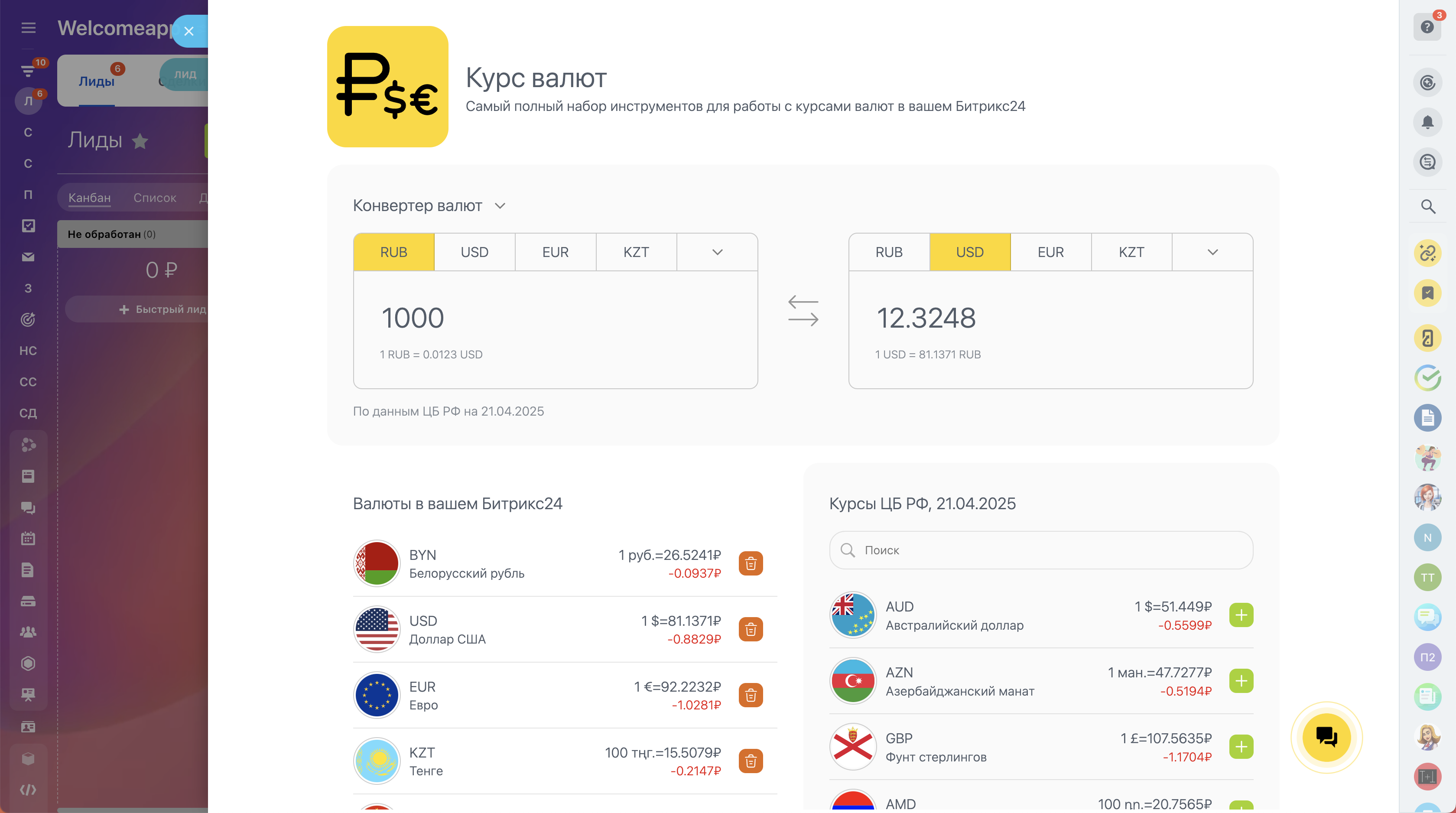 Мы собрали для вашего Битрикс24 ключевые функции для работы с курсами валют: