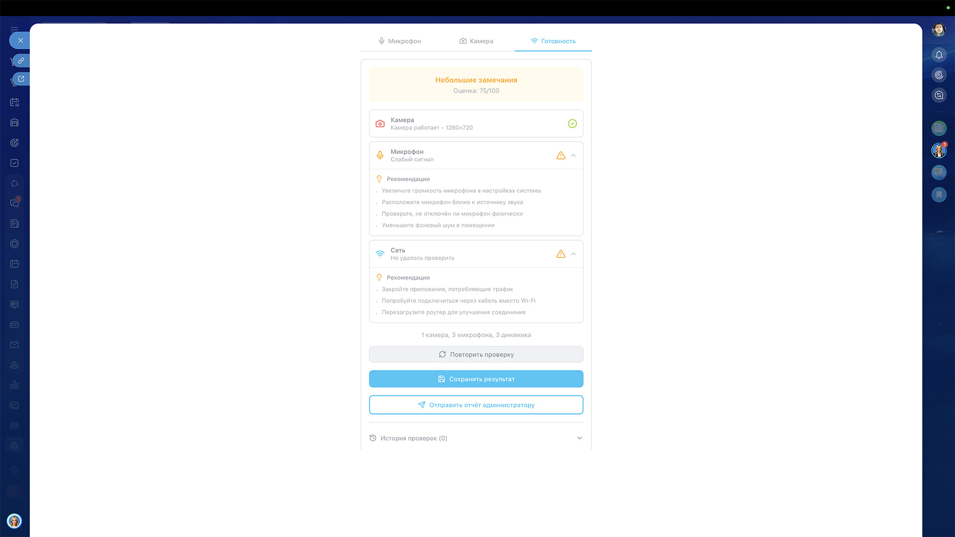 — Вы получите уведомление с полной диагностикой: камера, микрофон, сеть