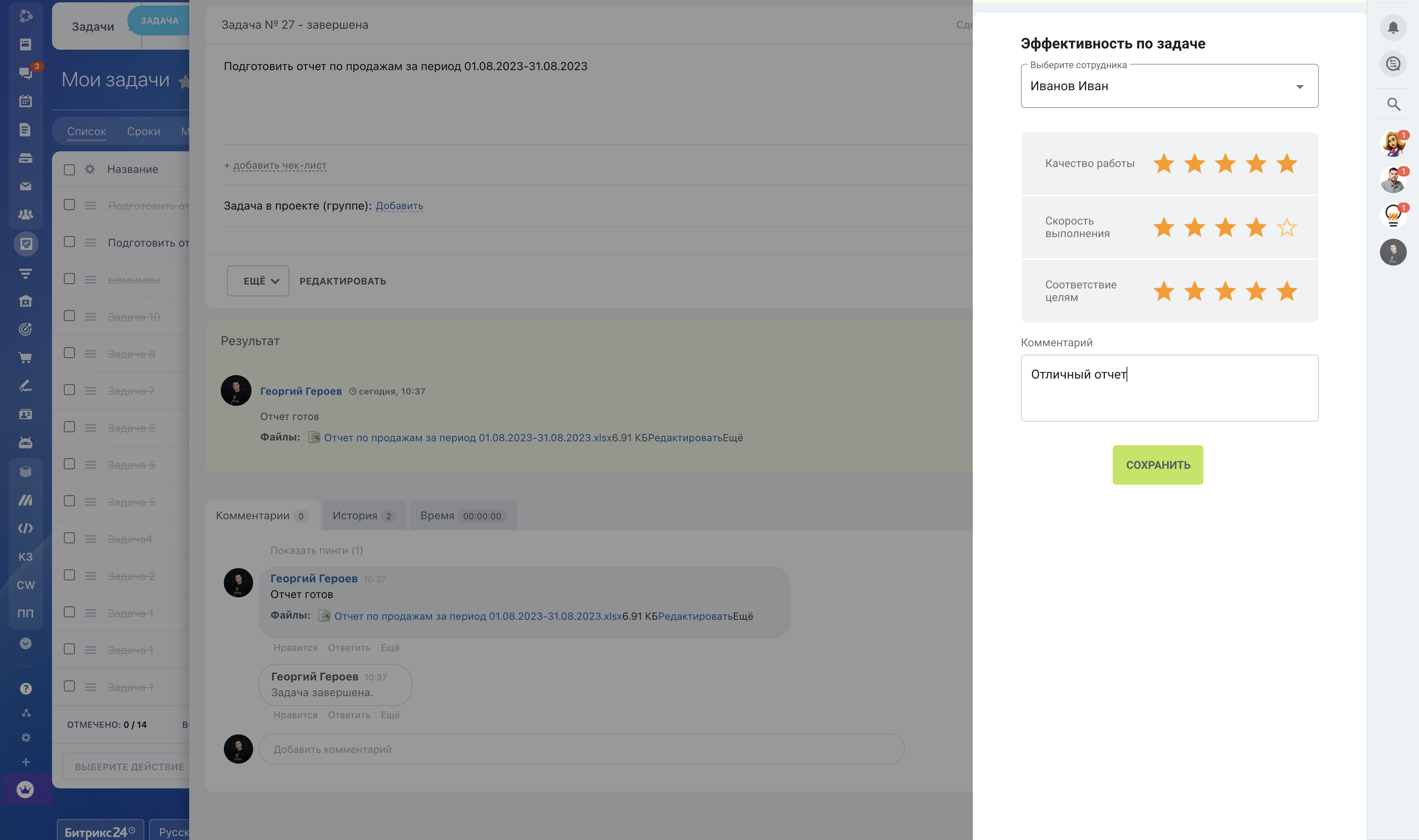 Простое и понятное приложение, которое позволяет постановщику оценить выполнение задачи по заданным критериям.
