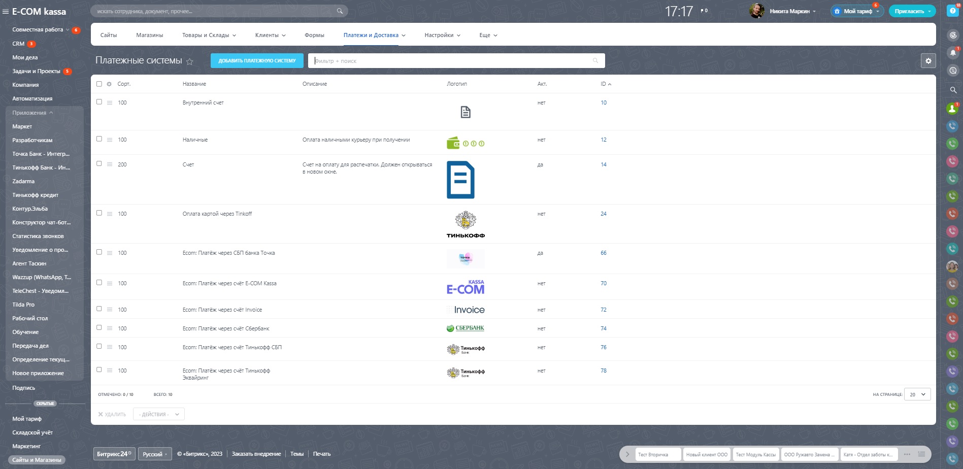 В настоящий момент уже работают все известные коннекторы для эквайринга Тинькофф банка, СБП Точки, Альфа-Банка, Robokassa, СБП Райфазен банк и ЮKassa, Sber и другие.
