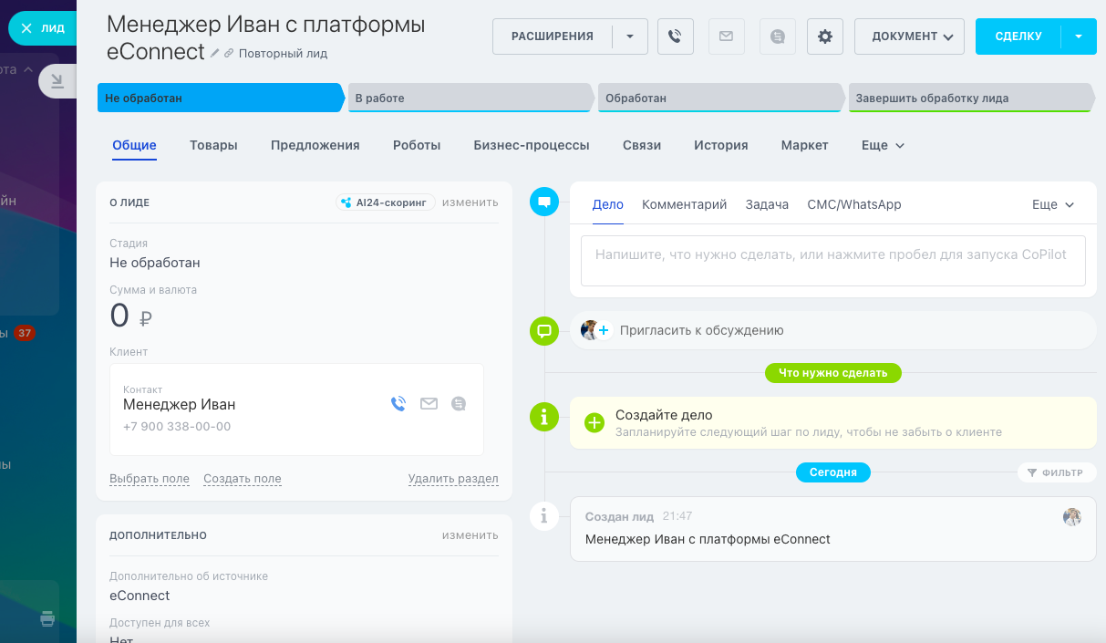 5. Автоматически получаете Лидов из сервиса #еКоннект в Битрикс24