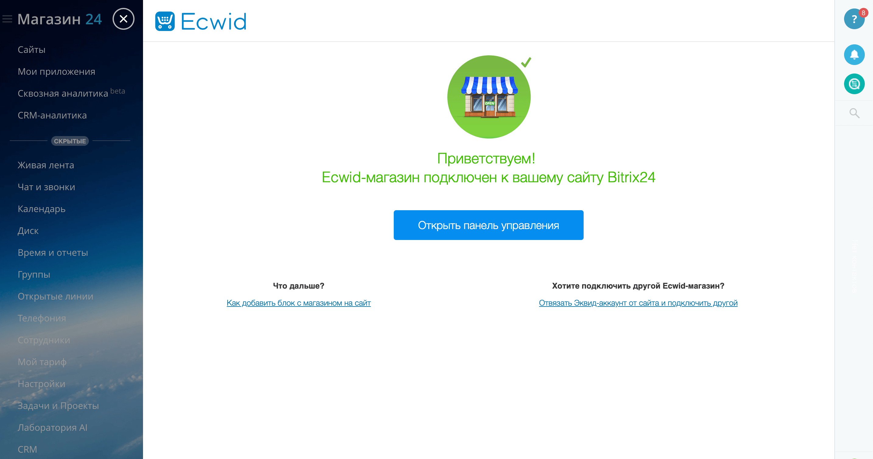 Ecwid (Эквид) — это блок с интернет-магазином для вашего сайта на Битрикс24.