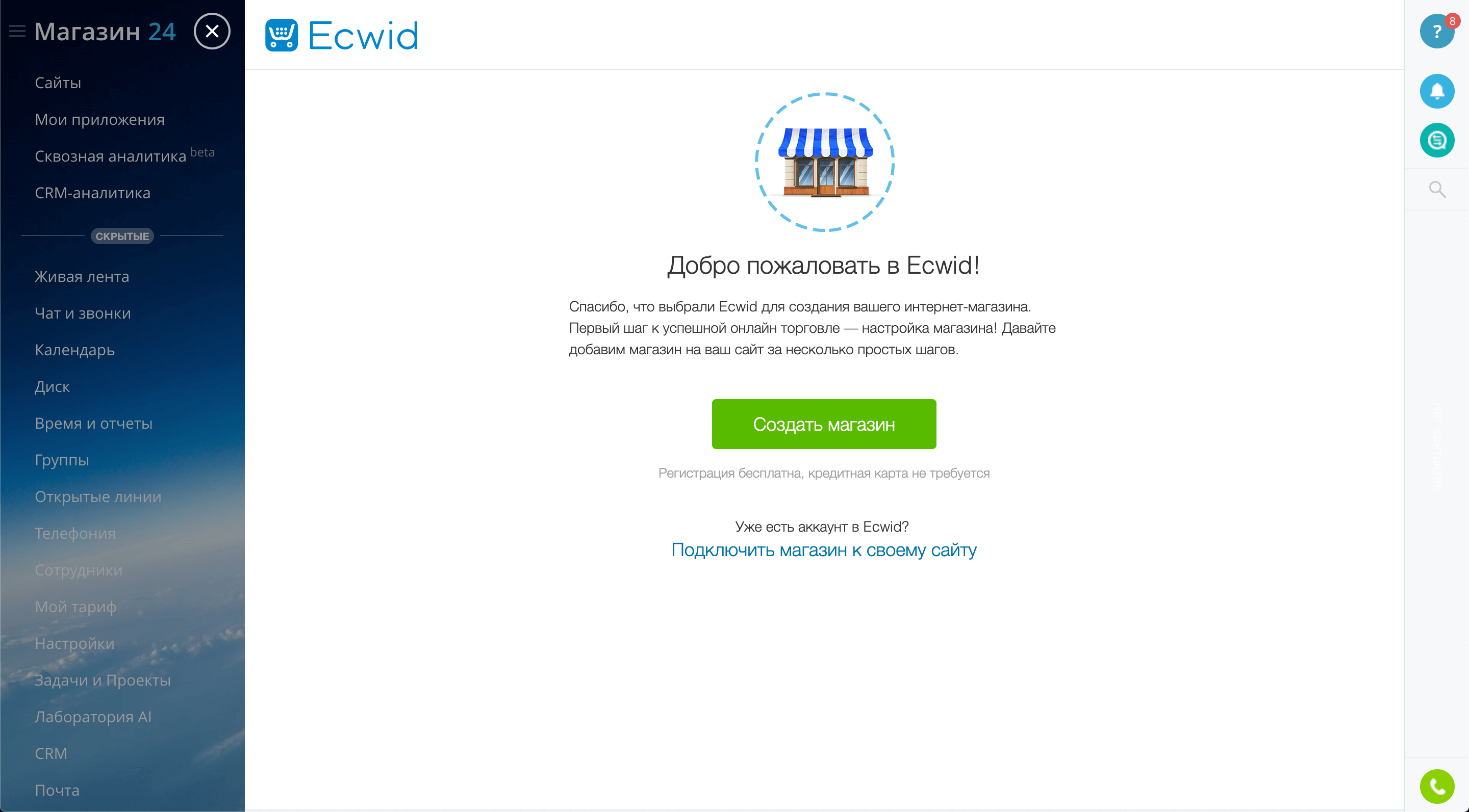 Панель управления Ecwid (можно создать бесплатный аккаунт)