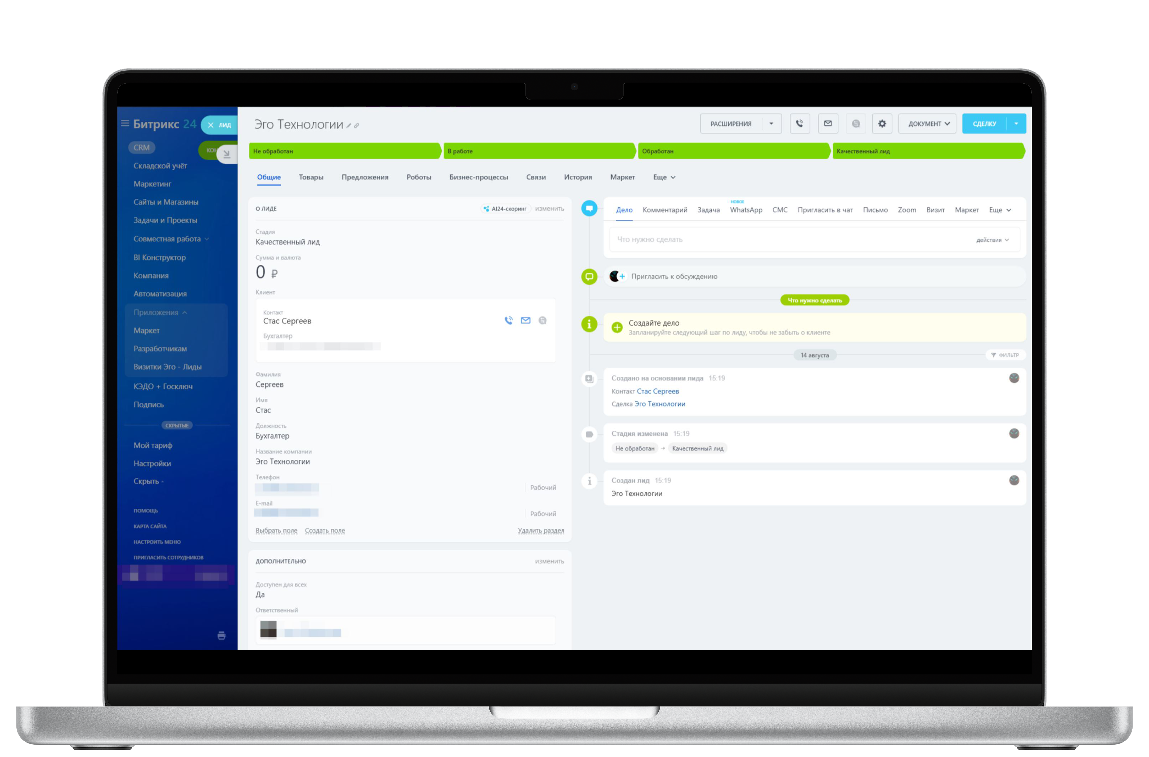 1. Интеграция сервиса EGO с Битрикс24 в рамках которой происходит создание лидов.