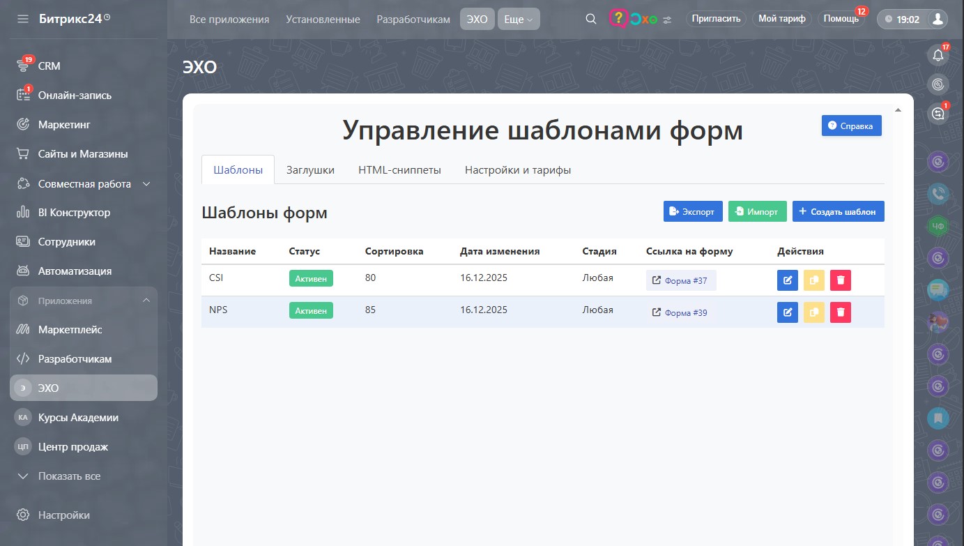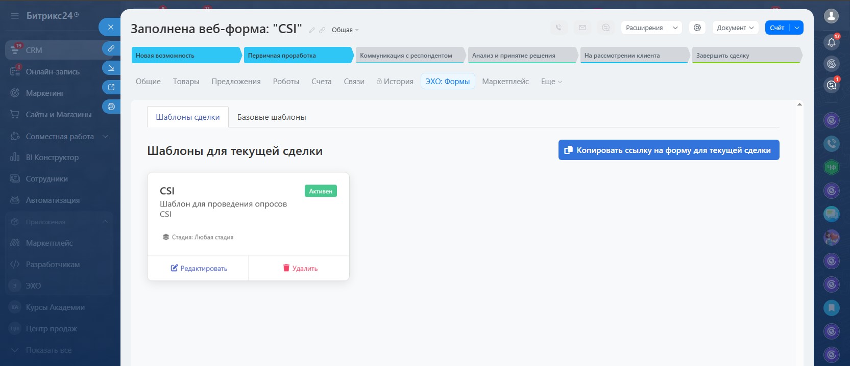 ЭХО - опросы и анкеты через веб-формы прямо из сделки CRM