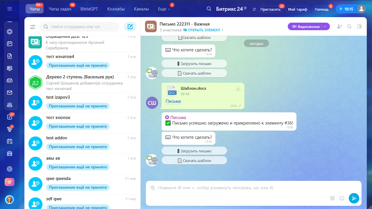 «Письма» — приложение для Bitrix24, которое объединяет подготовку, учет и хранение служебных писем в одном процессе.
