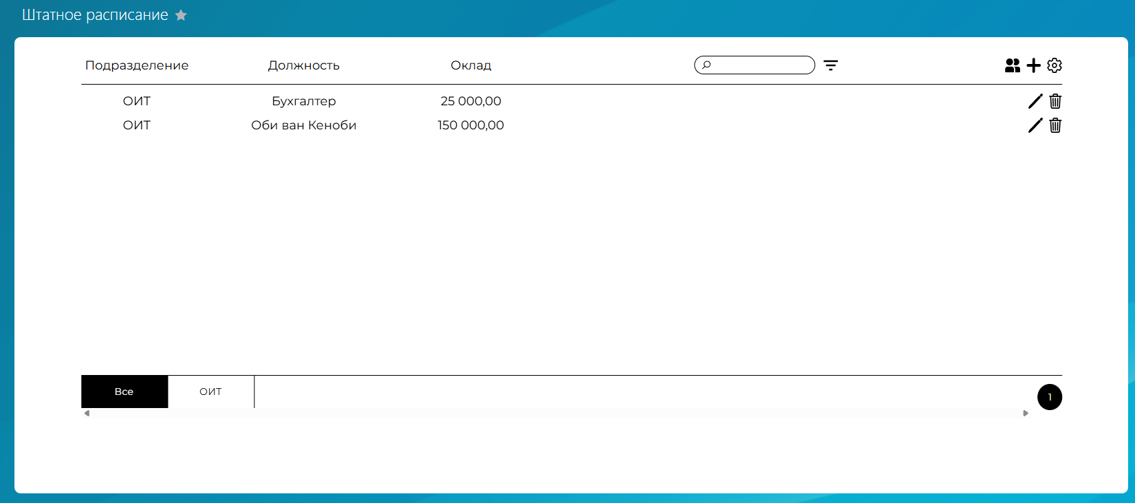 В дальнейшем любую должность можно отредактировать. Для этого необходимо нажать значок "ручки" в строке с необходимой должностью и изменить необходимые данные