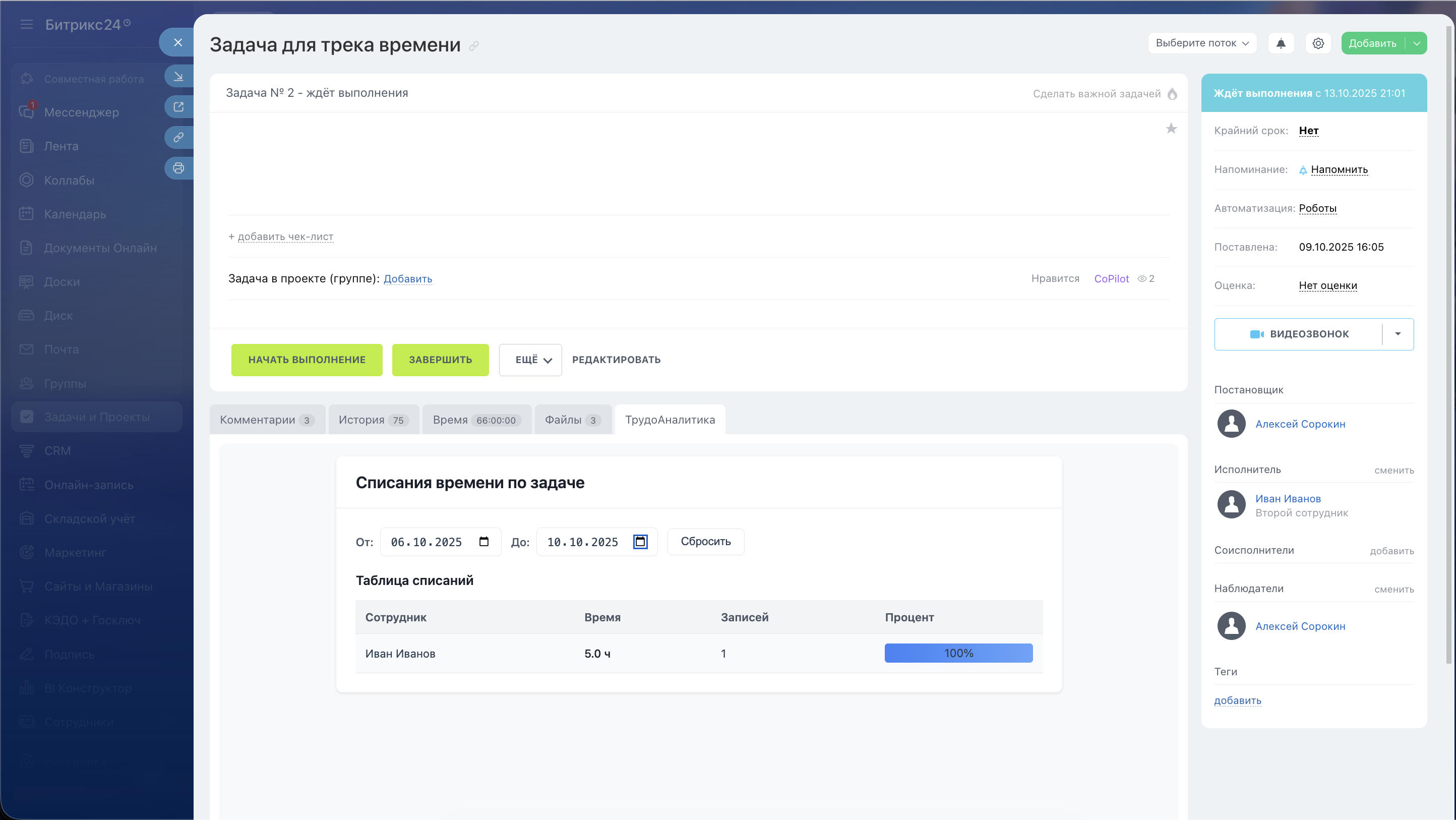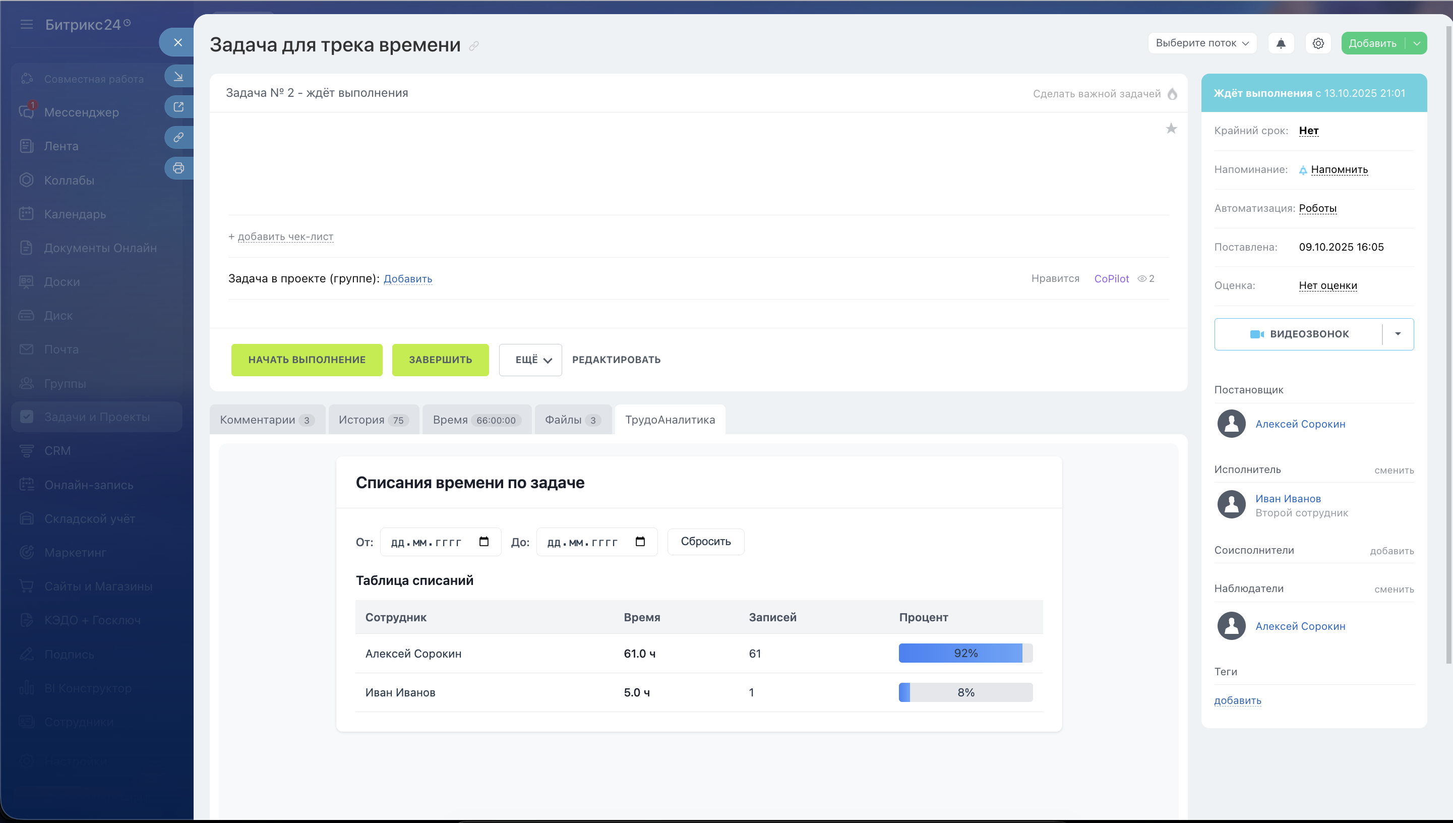 ТрудоАналитика — приложение для Битрикс24, которое помогает анализировать трудозатраты сотрудников прямо на странице задачи.
