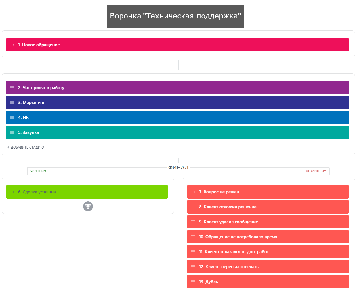 Воронка "техническая поддержка" — необходима для оперативного решения проблем и вопросов у наших действующих клиентов.