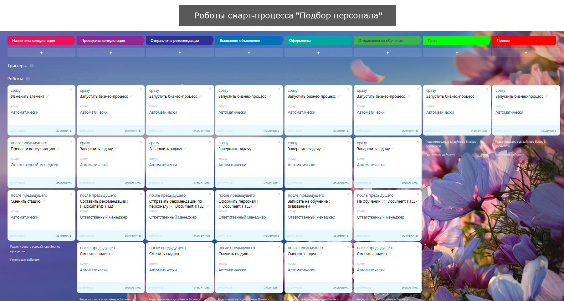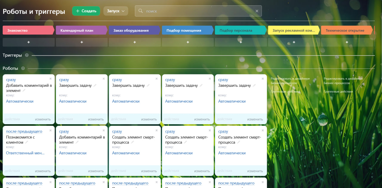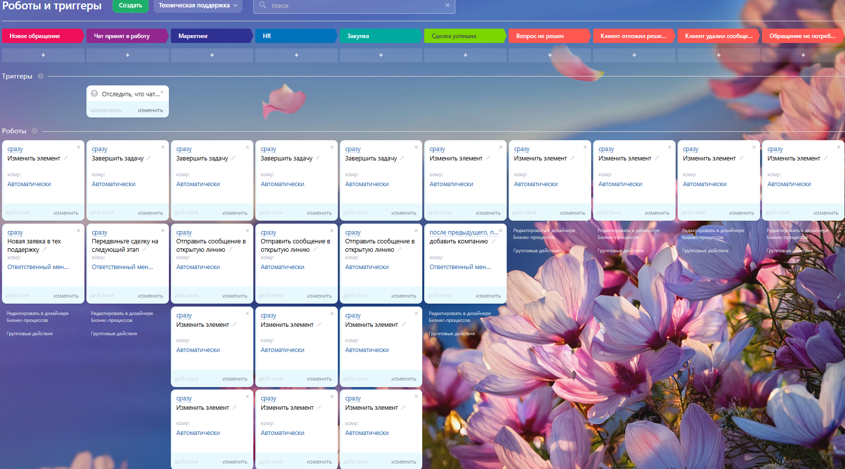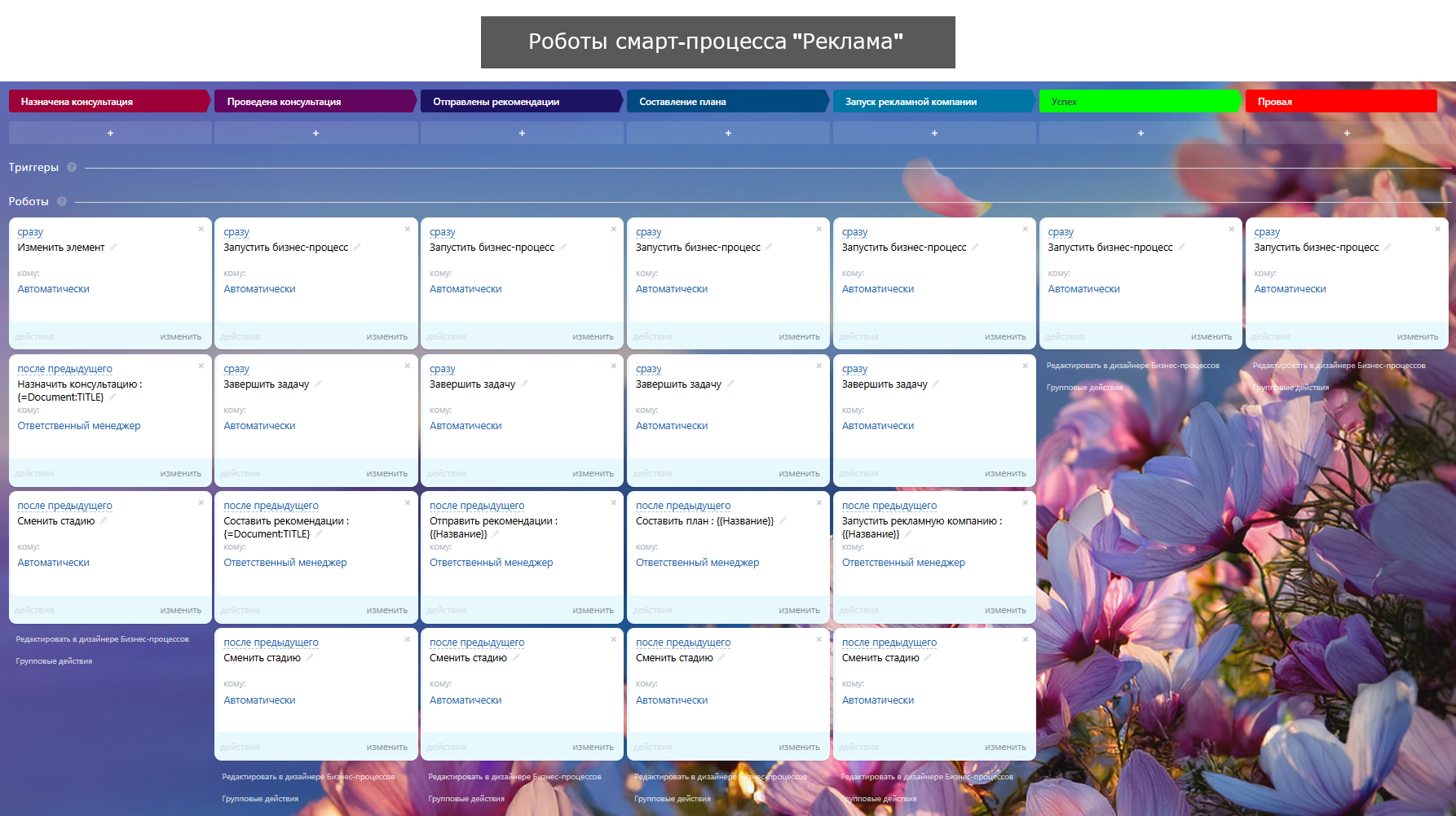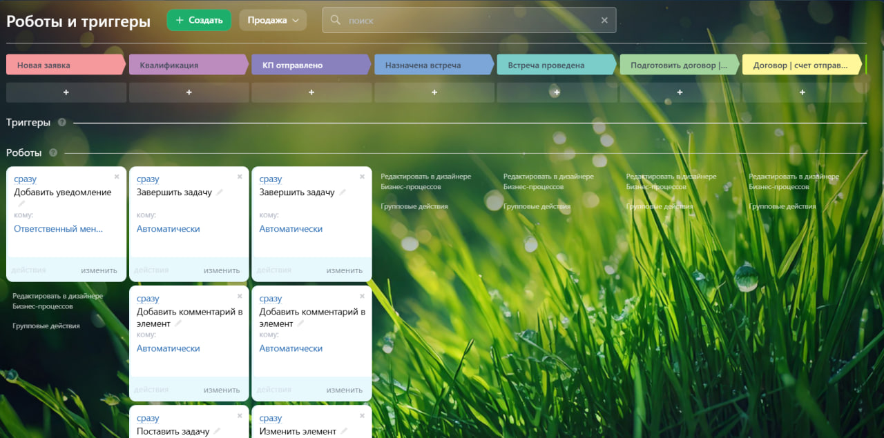 АвтоматизацияНа каждом этапе всех воронок активно используются роботы и бизнес-процессы, которые: