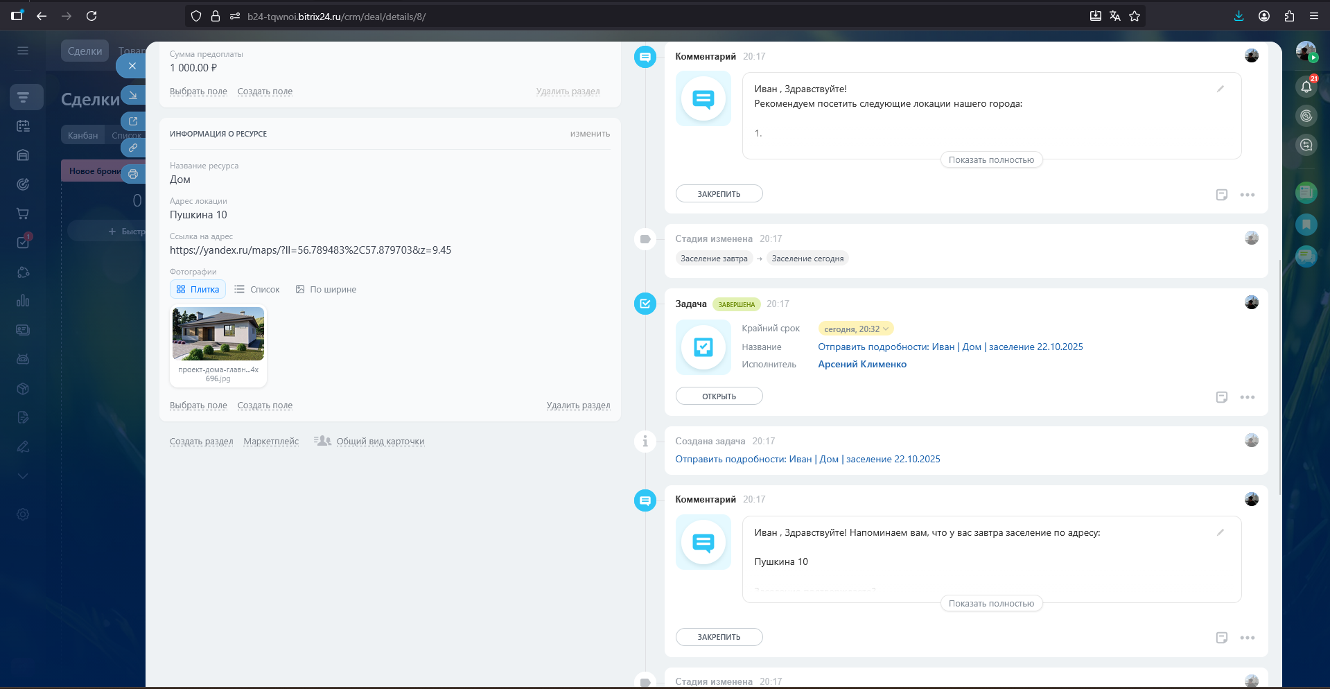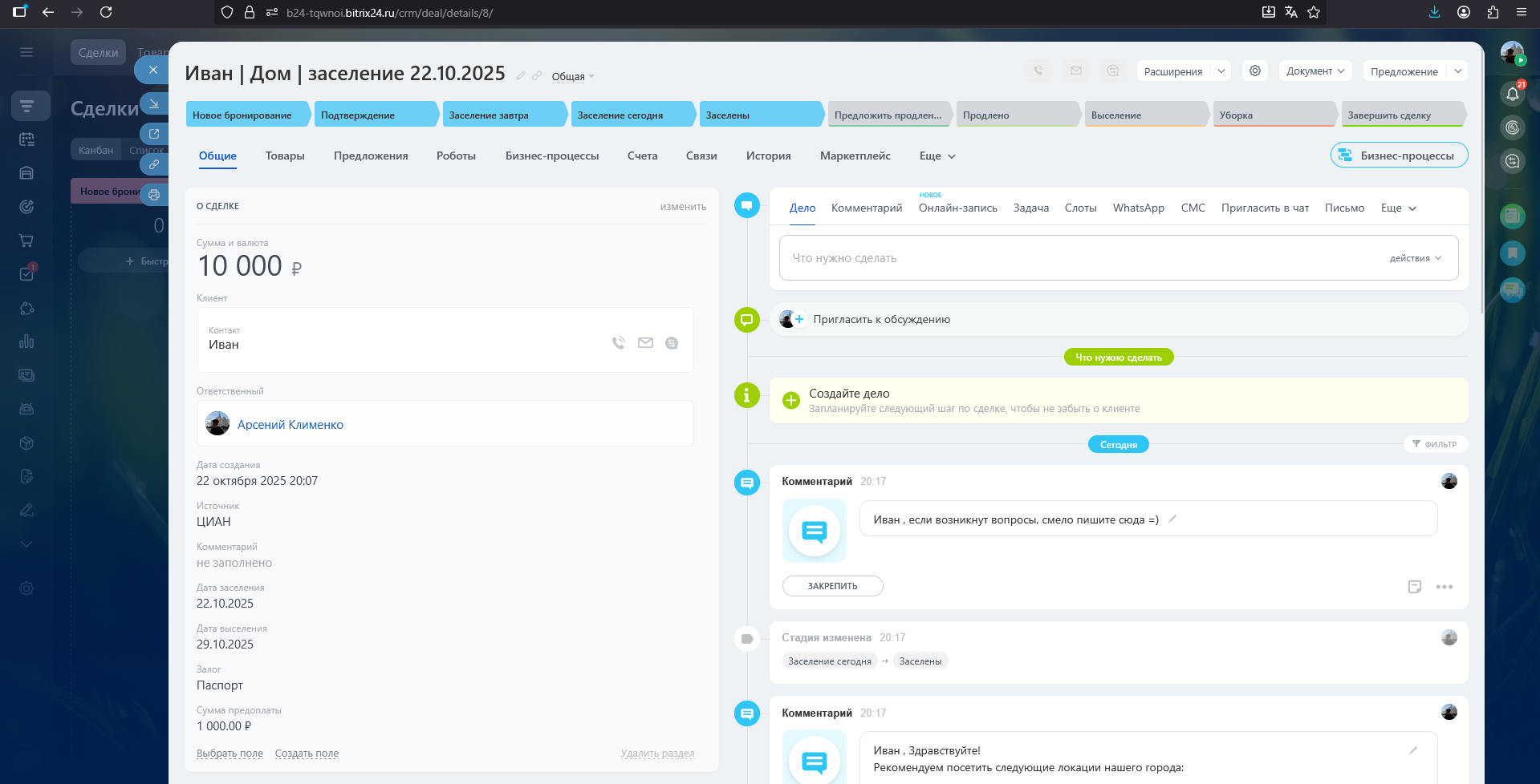 ✅Автоматизация работы компании, занимающейся посуточной арендой недвижимости - от первичного обращения клиента до заселения клиентов, выселения и уборки. Система управляет стадиями сделками, контролирует задачи менеджеров и обеспечивает коммуникацию с клиентами.
