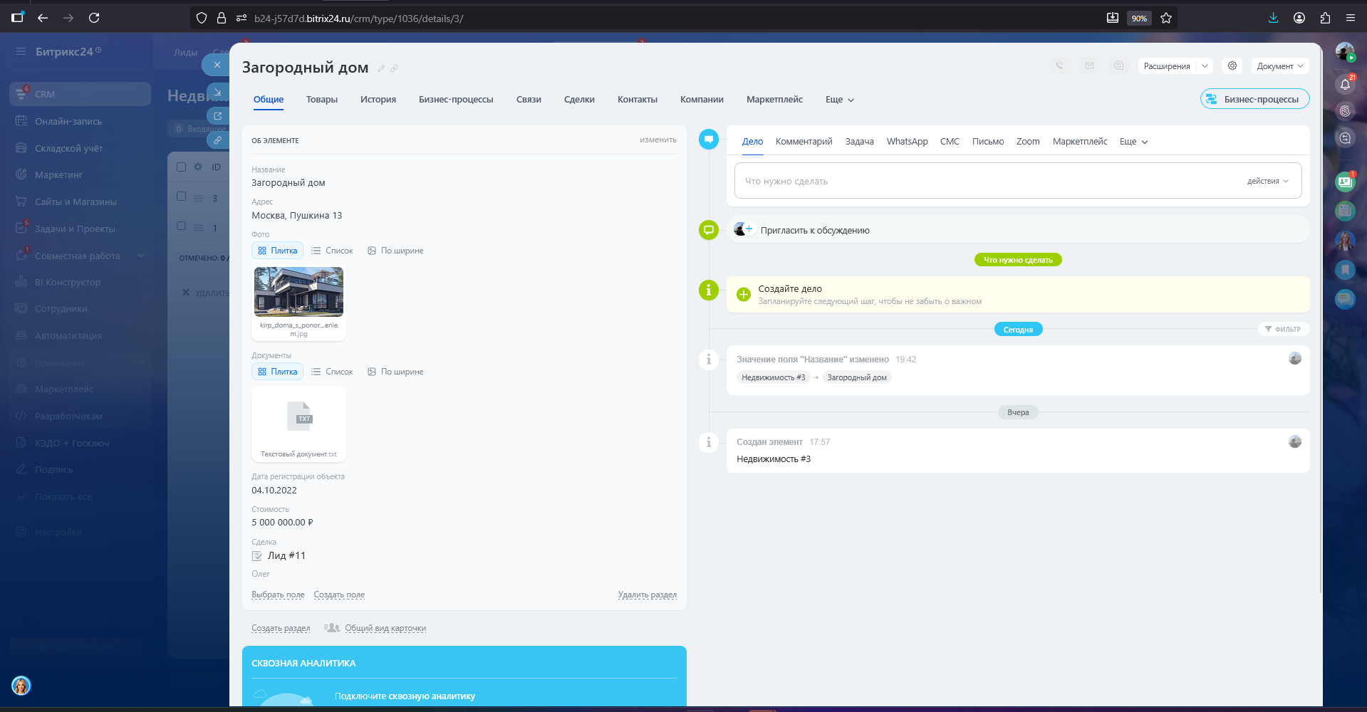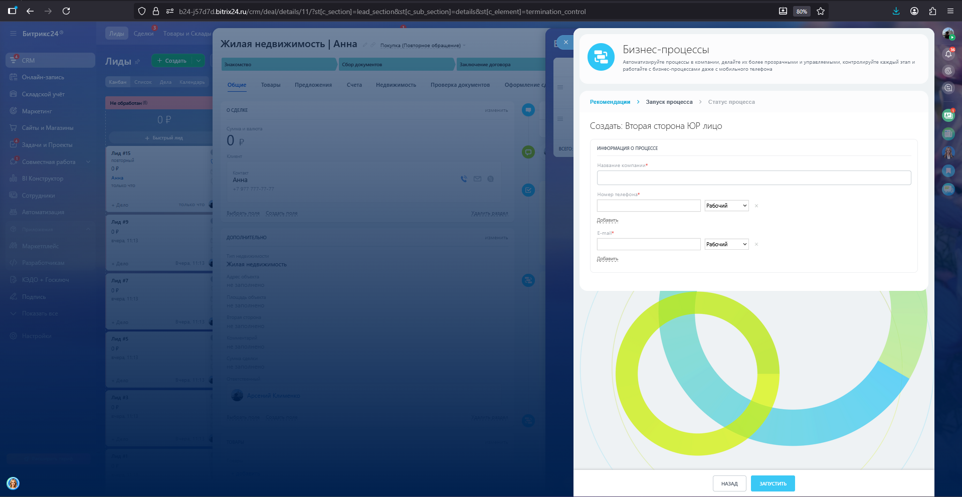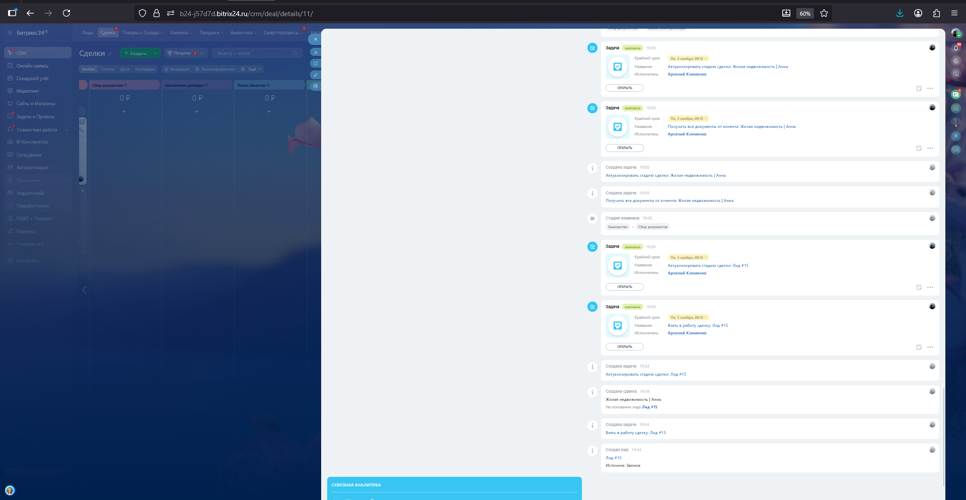 Автоматизация работы агентства недвижимости — от первичной заявки клиента до заключения сделки с второй стороной. Система управляет стадиями сделки, контролирует задачи менеджеров.
