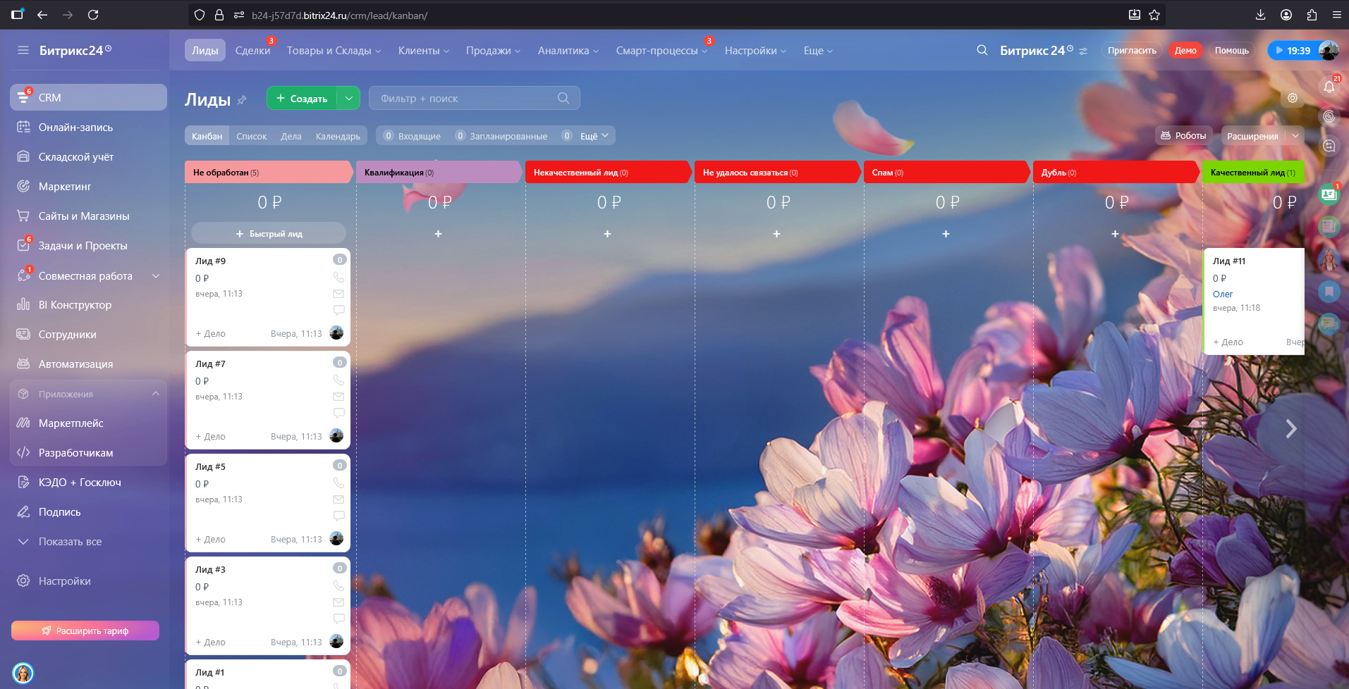 Не обработан → Квалификация → Качественный лид\Некачественный лид\Не удалось связаться\Спам\Дубль