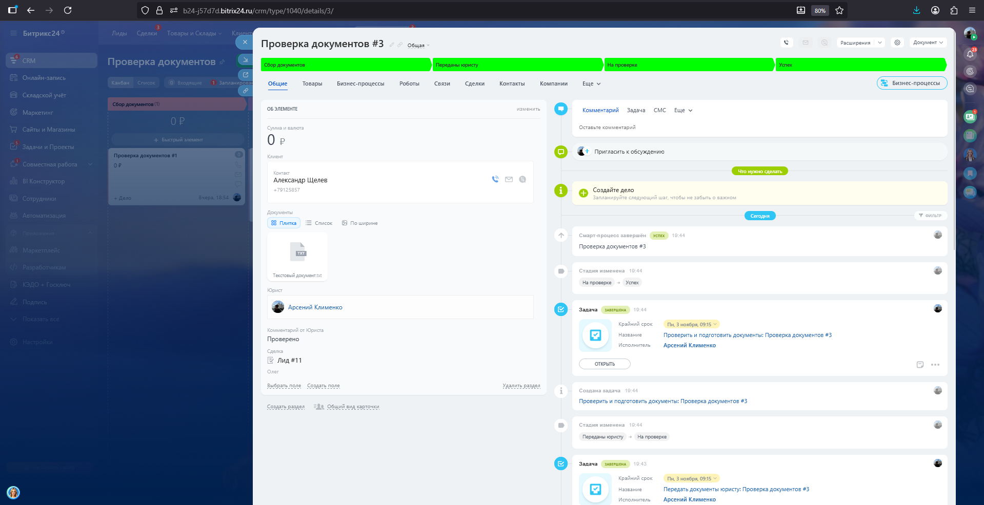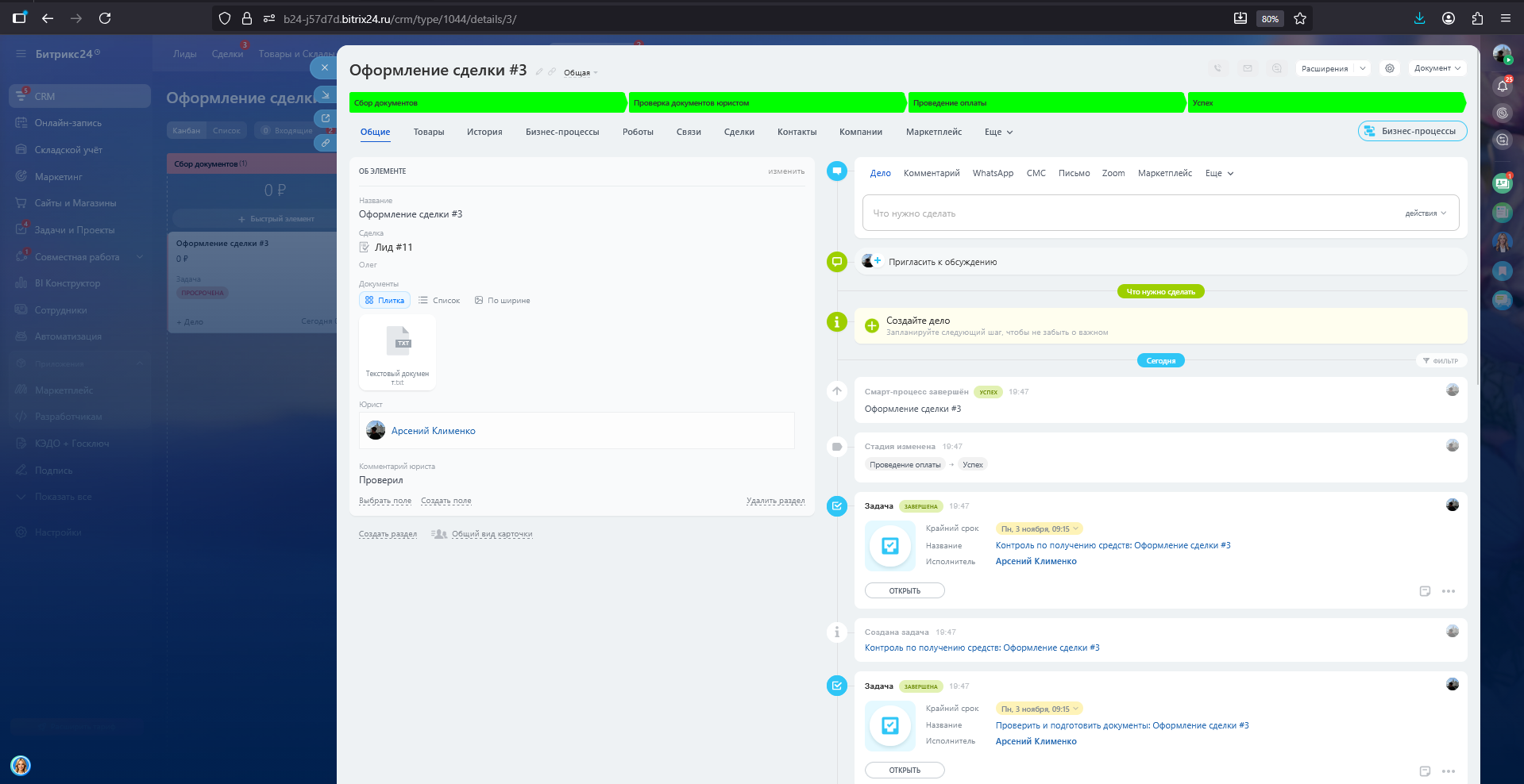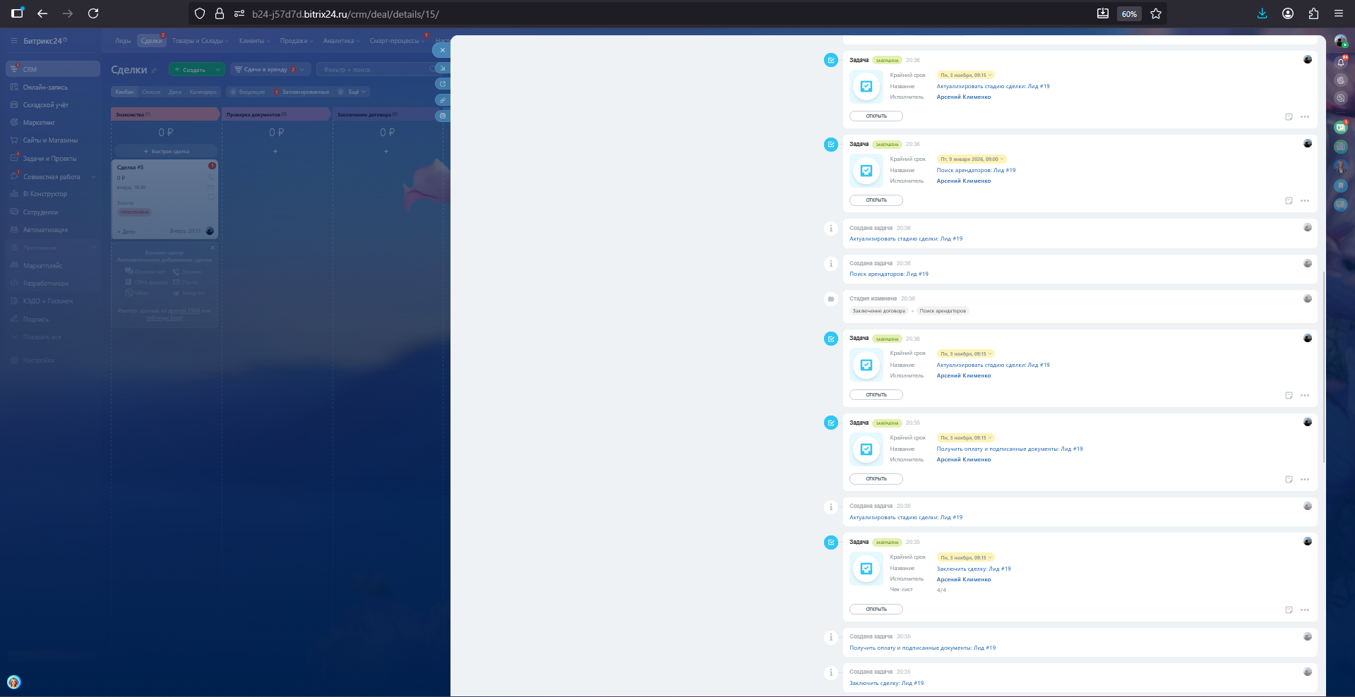 Роботы ставят задачи менеджеру, синхронизируют этапы сделки.