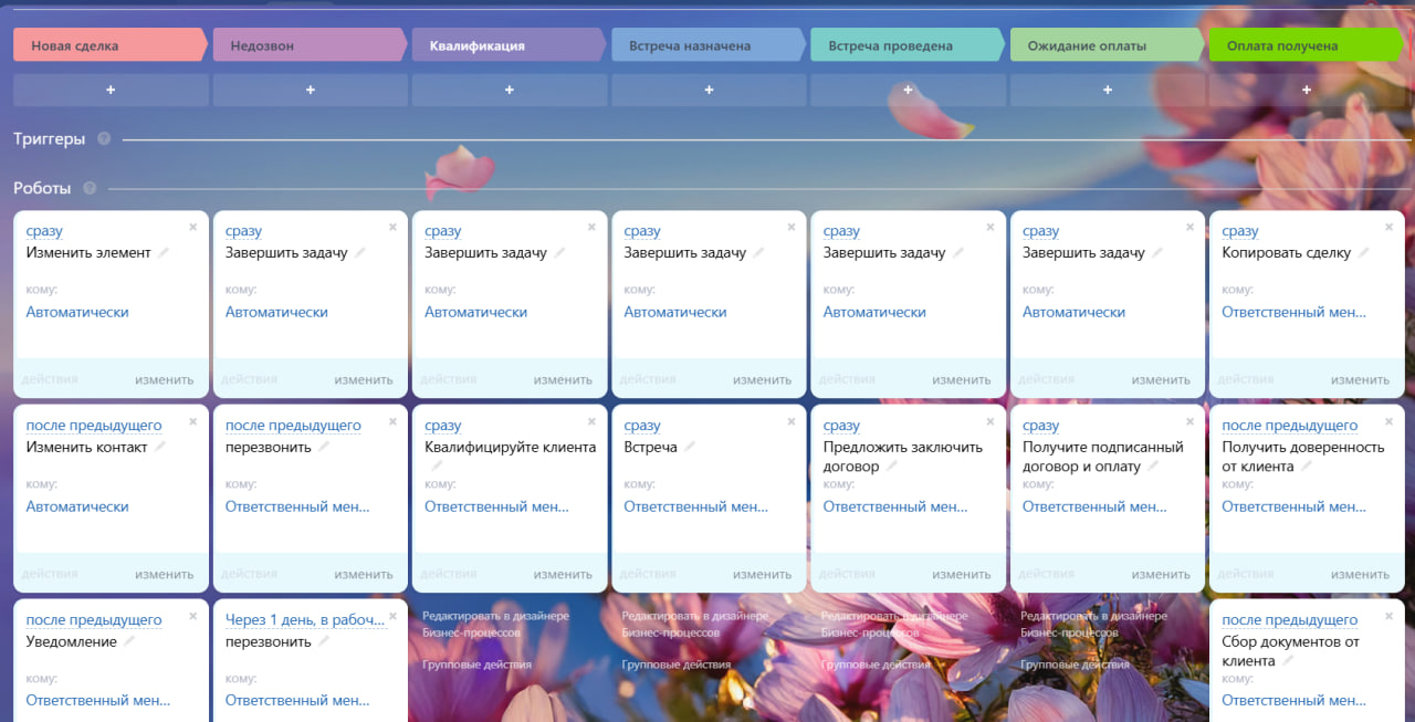 Роботы автоматически ставят задачи, напоминают о важных этапах и уведомляют сотрудников.