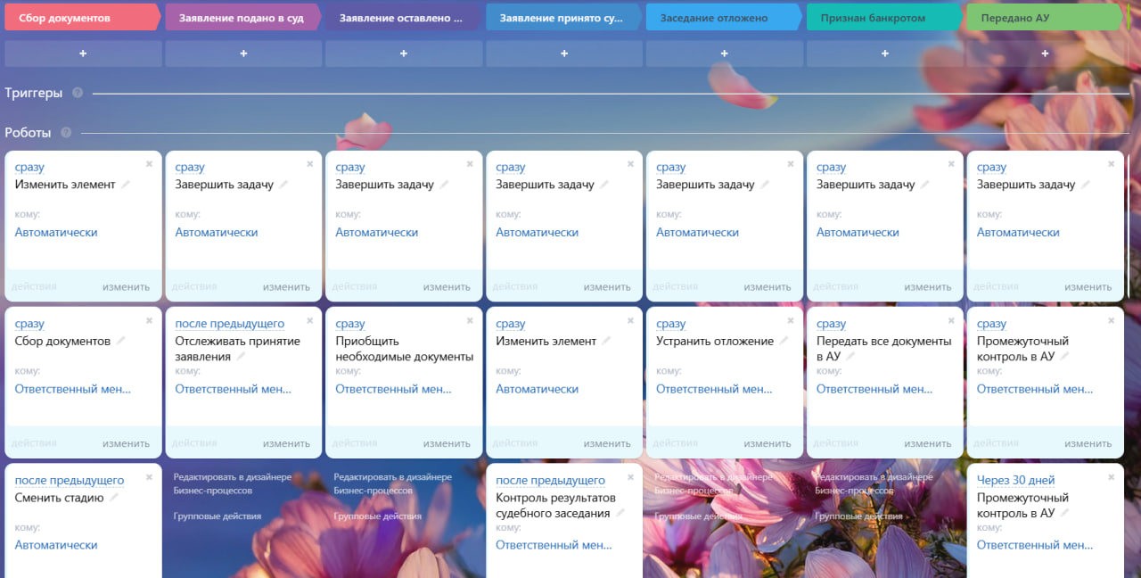 CRM для услуг банкротства обеспечивает полный контроль над процессами: от привлечения клиента до успешного завершения дела. Система повышает эффективность отделов продаж и юридического отдела на 50%, ускоряет обработку дел и улучшает клиентский опыт.