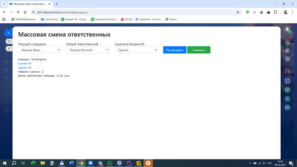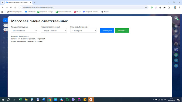 Для выбранной сущности Битрикс24 поменяется ответственный
