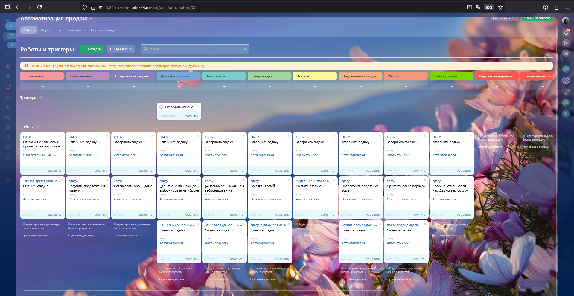 Смена стадии на Дом забронирован по триггеру