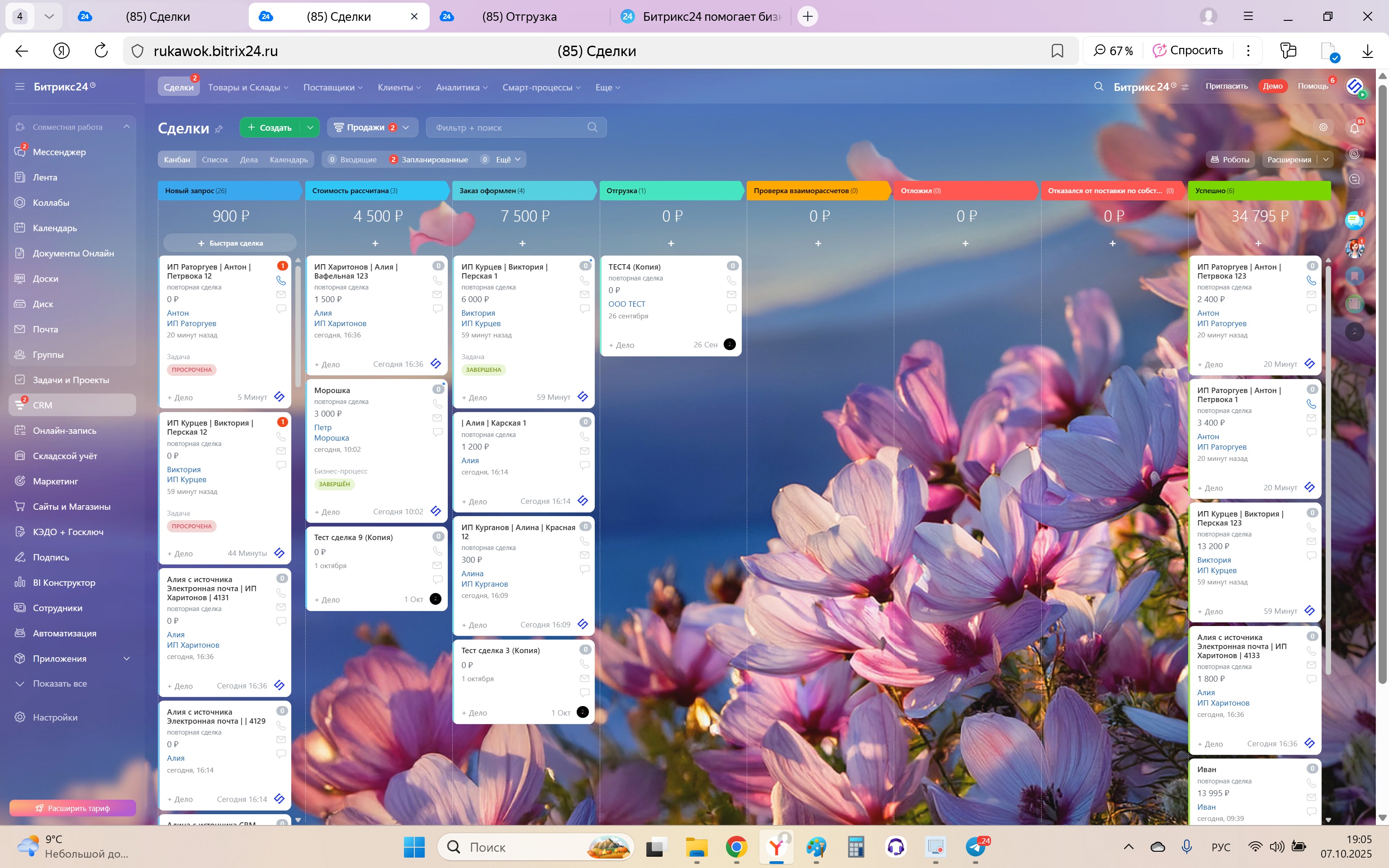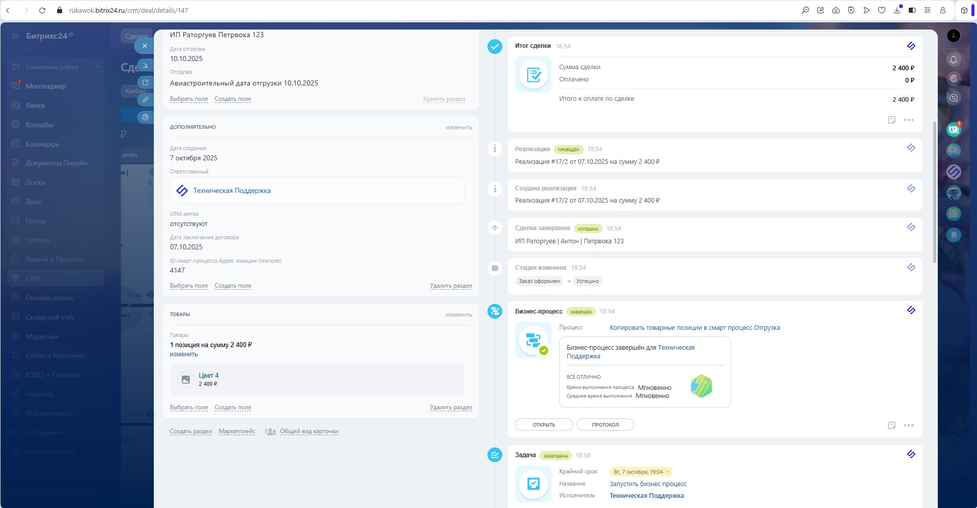 Единый цикл от сделки до поставки товара в конечную точку с автоматическим переносом сделок между отделами.