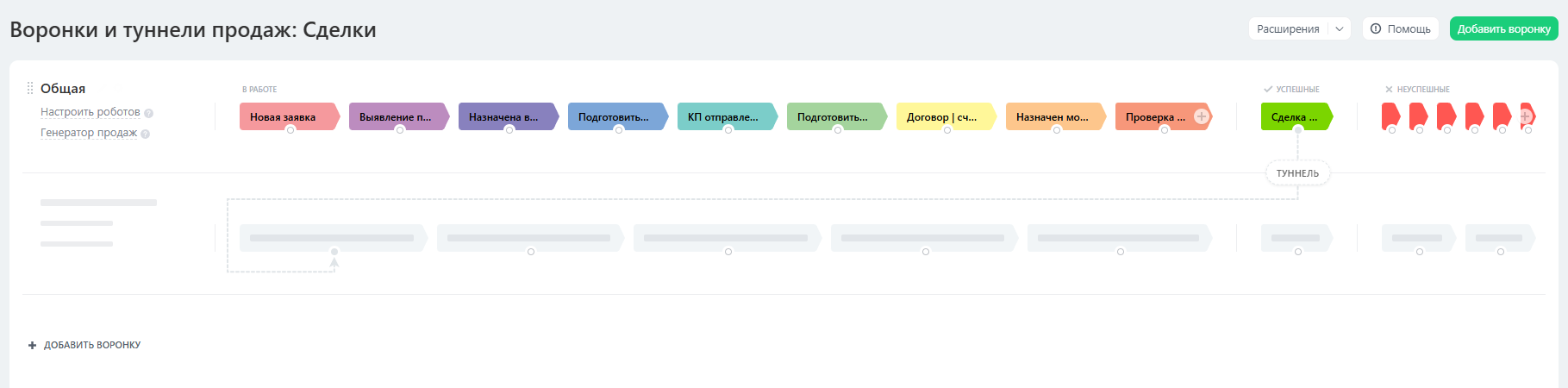 Визуализирует процесс продаж для эффективного управления сделками