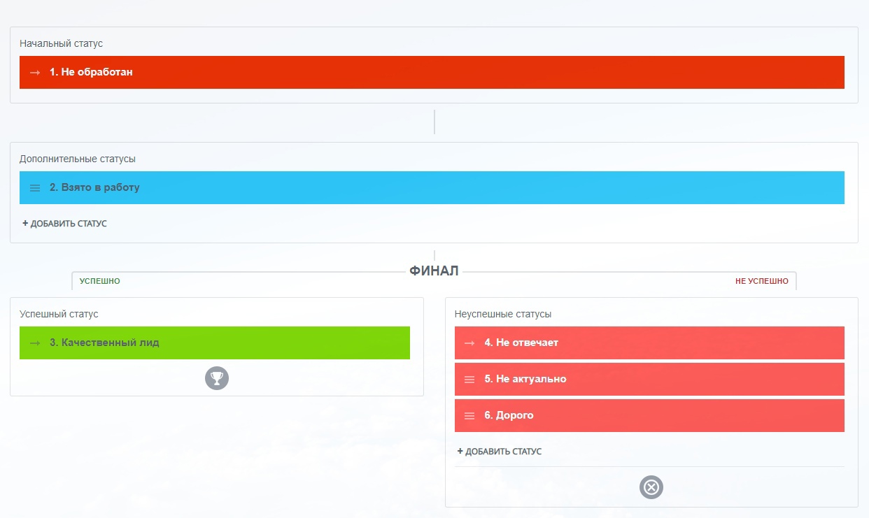 (стадии, карточка Лида) - Настройки по 1 воронке Сделки
