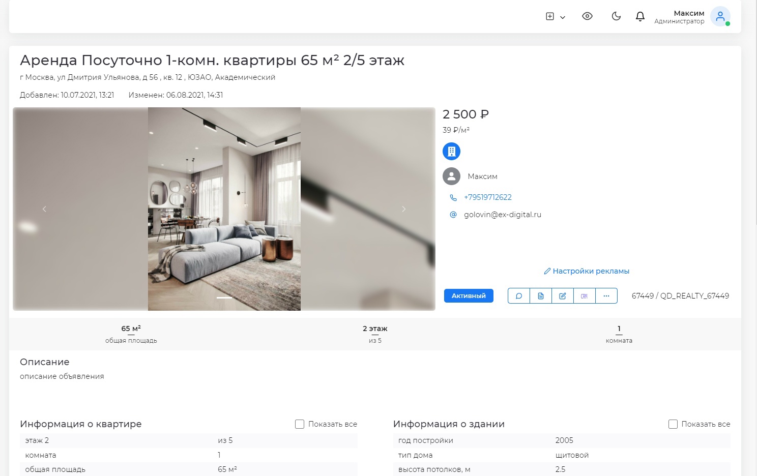 Готовая CRM с выгрузкой объектов на площадки. Контролируйте сделки, объекты, сотрудников.