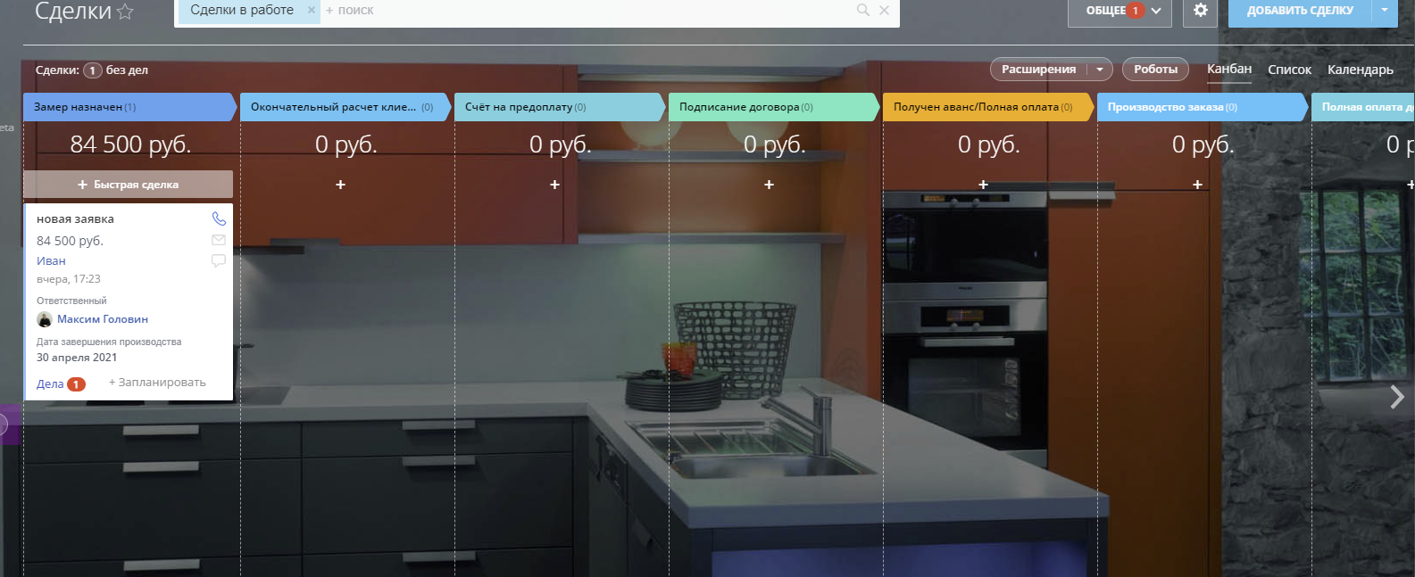 Готовая CRM для производства и продаж кухонь. Систематизация в кратчайшие сроки.