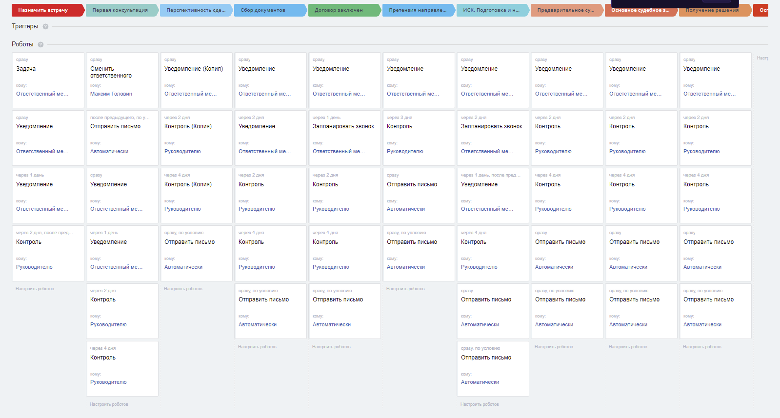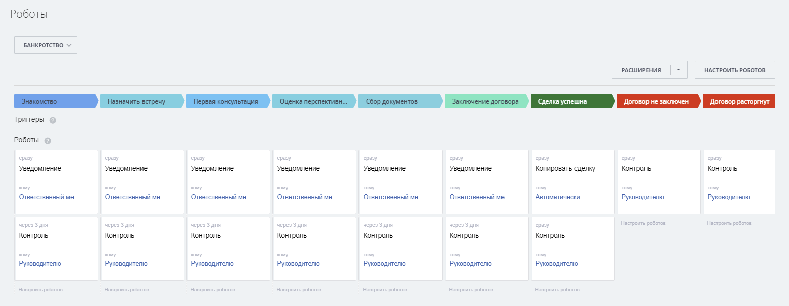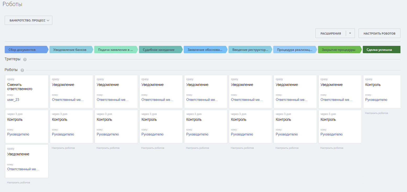 услуги», «Банкротство», «Банкротство. Процесс» - Настройки роботов