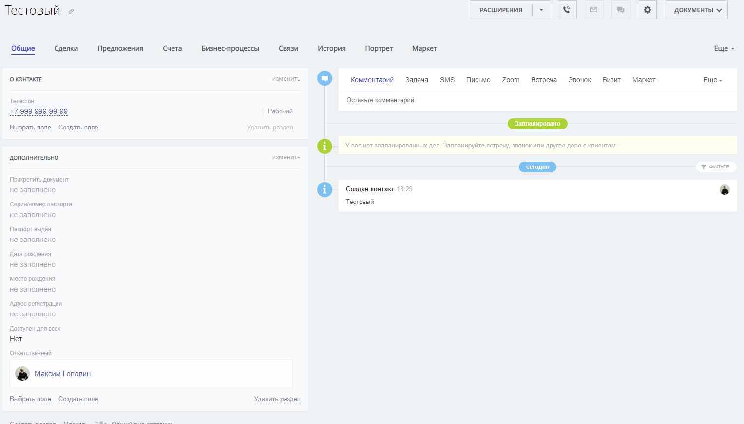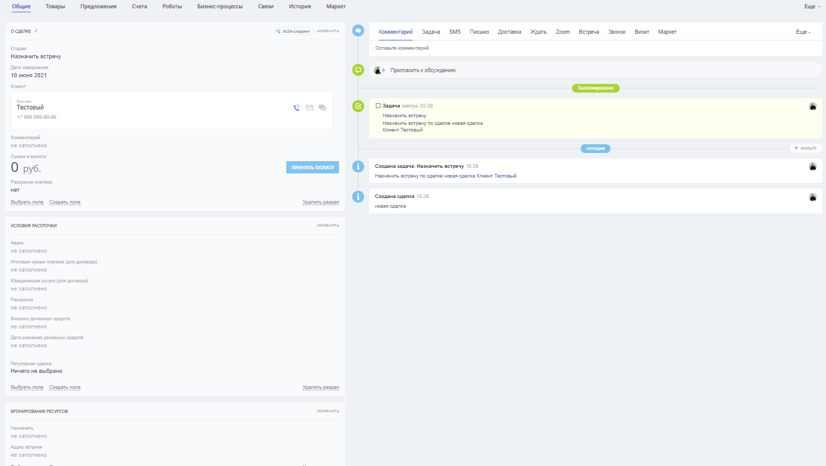 Мы предлагаем использовать простой режим работы c CRM (Сделка+ Клиент).
