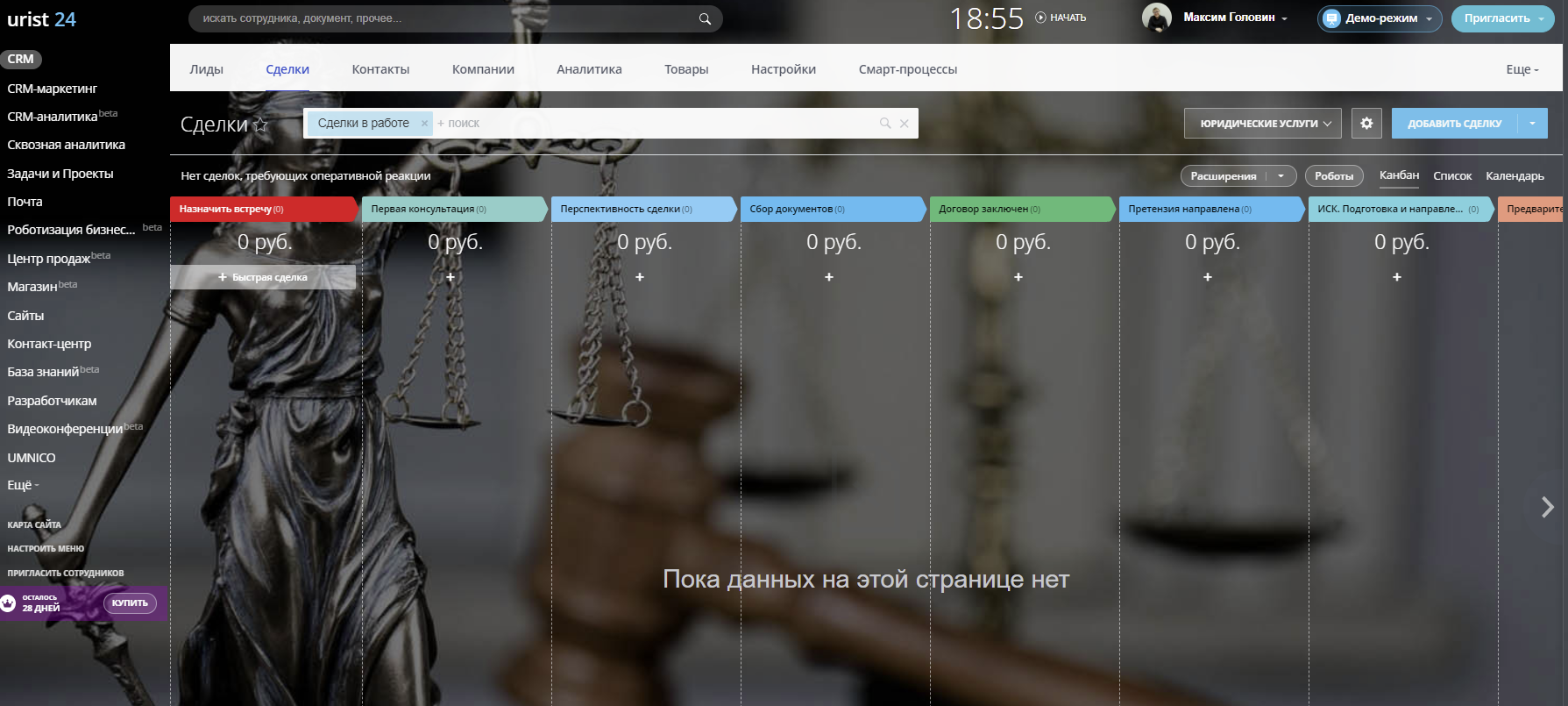Сделки (стадии, карточка Сделки): Направление "Юридические услуги"