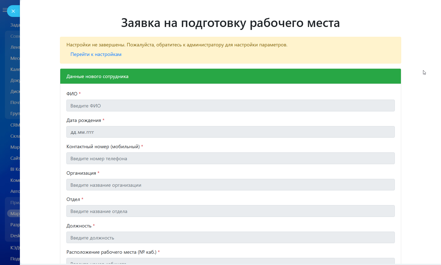 DeskPrep - Заявка на подготовку рабочего места
