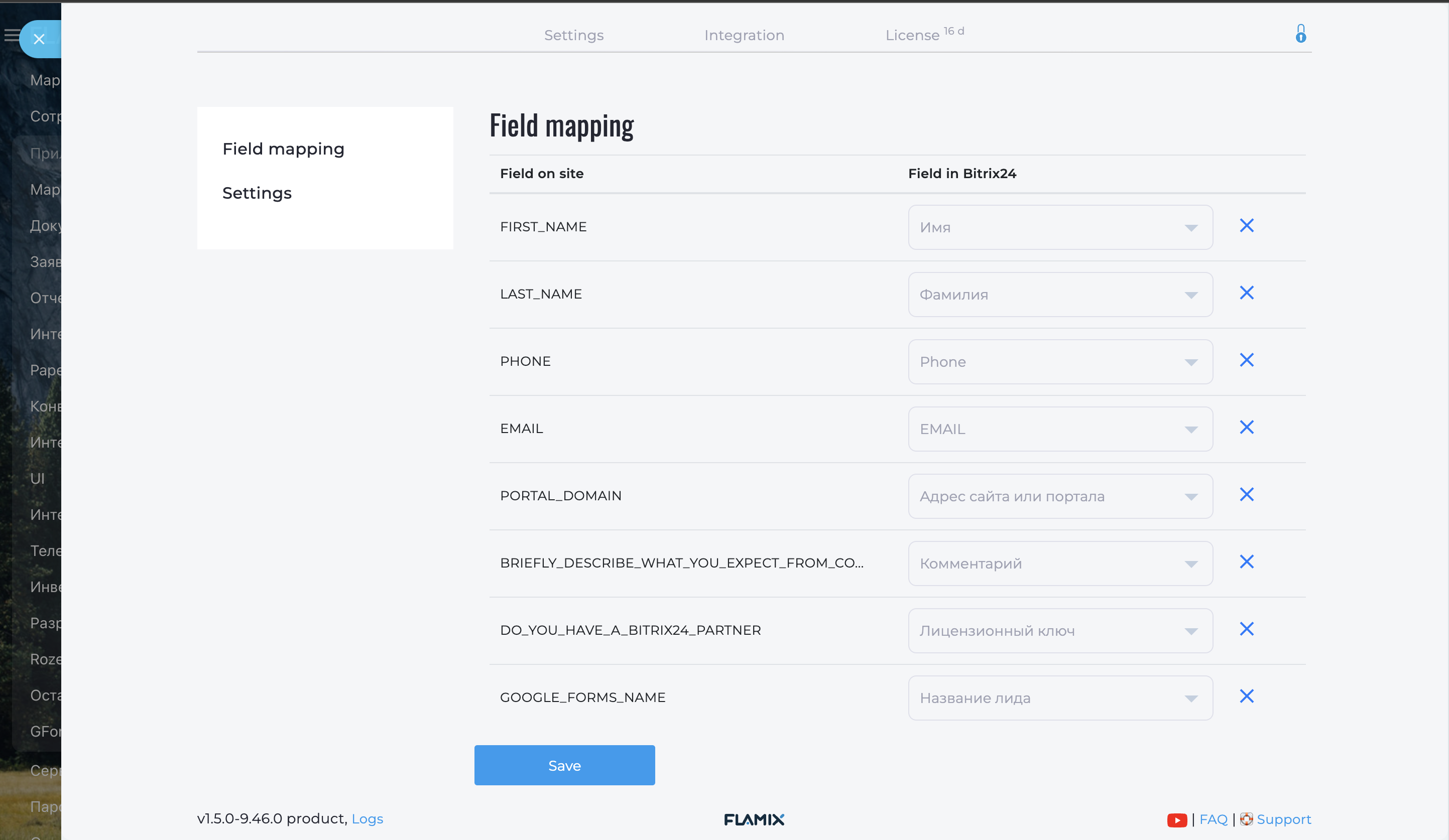 Внимание! При первой интеграции нужно разрешить отправлять данные на наше приложение, подробнее - https://ru.flamix.solutions/faq/ru-google-forms-error-google-hasn-t-verified-this-app/