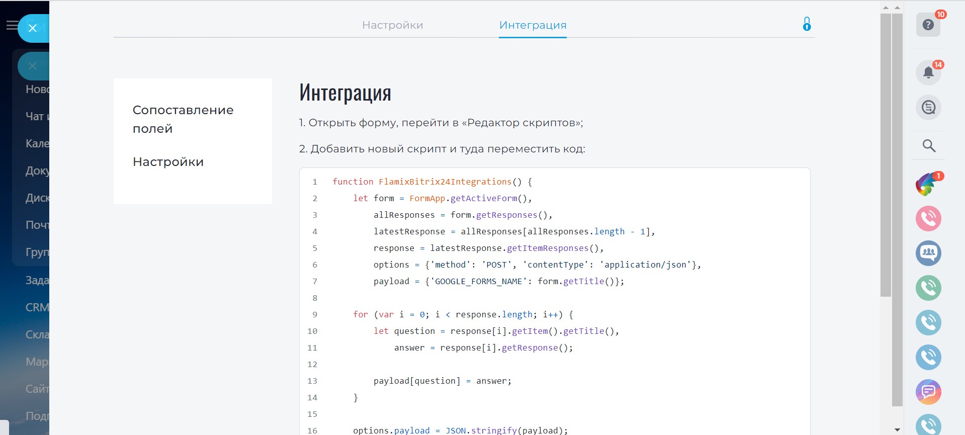 Интеграция Google Forms и CRM Битрикс24. Формы попадают в ЛИДы или Сделки. Выбор соответствия полей.