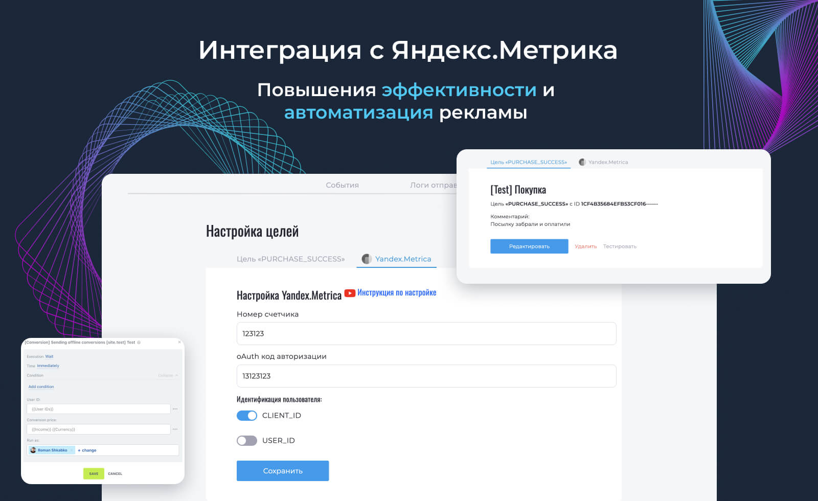 - Автоматизация данных. CRM-сделки сами летят в Метрику