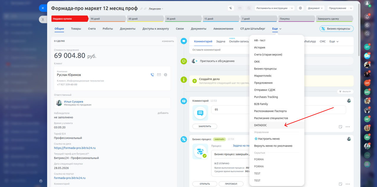 - Готово, теперь вы можете моментально создавать документы из карточки сделок/лидов на основе их данных и ваших шаблонов
