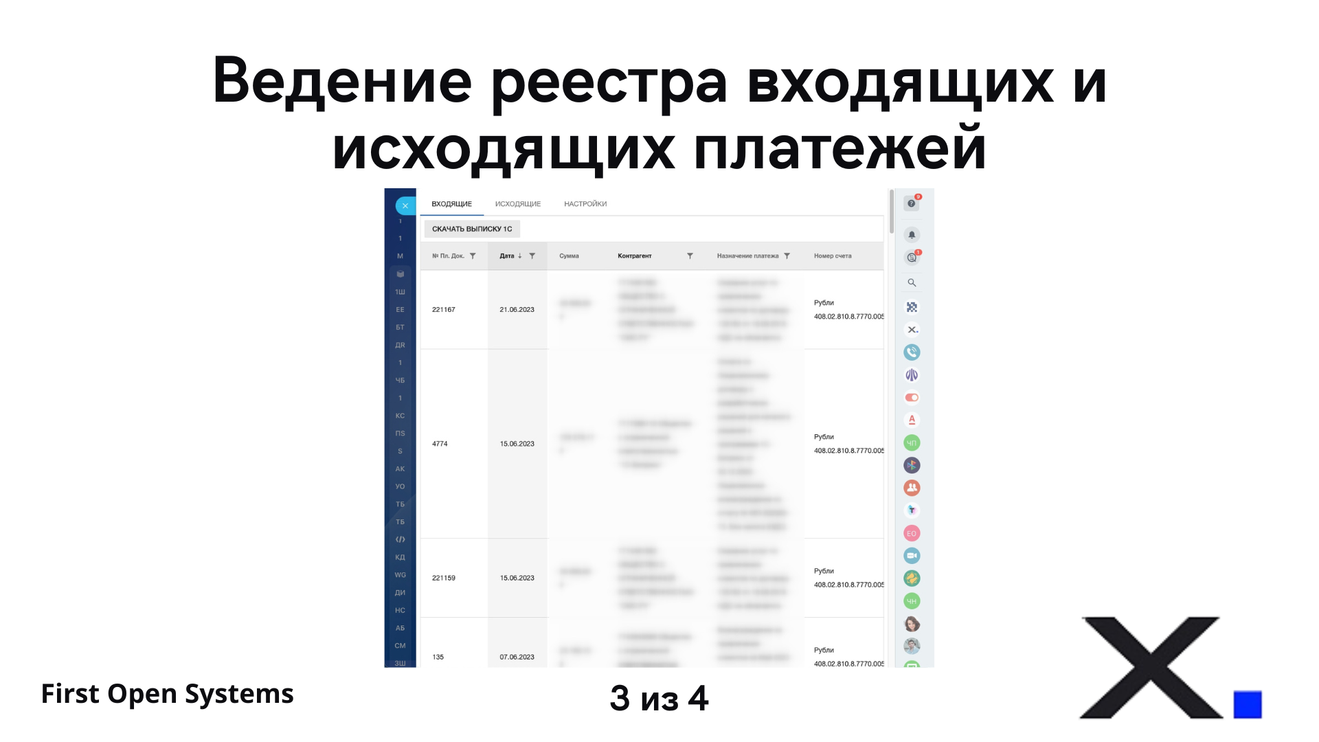 Приложение позволяет отслеживать входящие платежи на счет в Хайс Банке. Автоматически отмечаются оплаты счетов, перевод сделки на следующую стадию после оплаты.