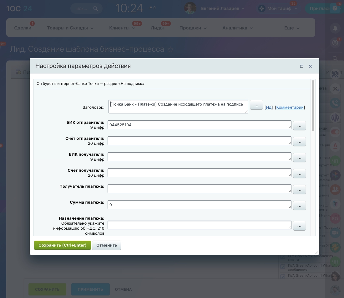 Моментальная отправка платежей из Бизнес-процессовУпростите работу бухгалтера, пусть Битрикс24 сам отправляет платежи на подпись