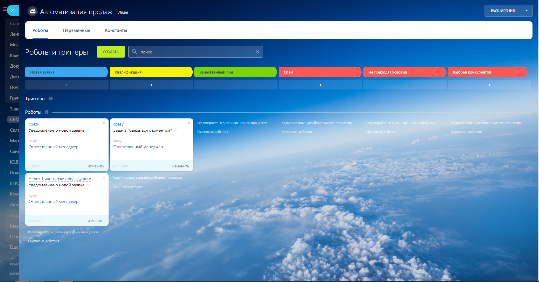 Для вашей комфортной работы настроили воронку ЛИДов и Сделок. Воронка ЛИДов позволяет отслеживать каждое обращение клиента и квалифицировать его.