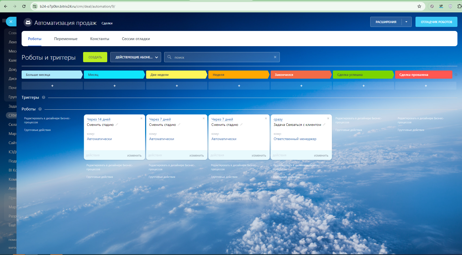 - Месяц. При нахождении Сделки на данной стадии более 14 дней стадия автоматически меняется на "Две недели"