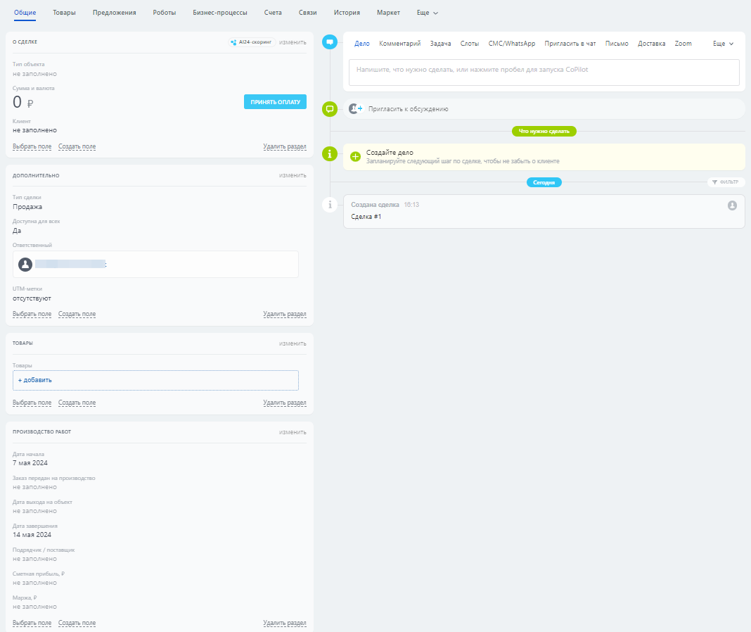 CRM для вашего бизнеса полностью настроена. При настройках учли все этапы Сделки.