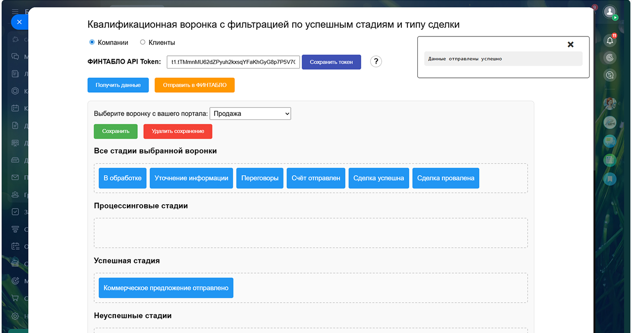 Убедитесь, что в разделе "Успешные стадии" выбраны нужные вам стадии сделок